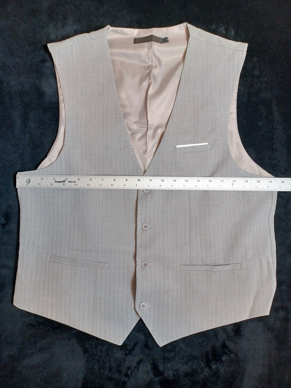 Men s Herringbone Pinstripe Light Gray Suit Vest, Size Large