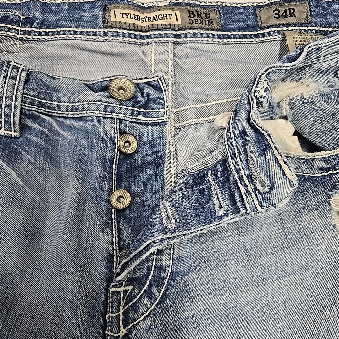 Buckle BKE Mens Tyler Straight Leg Button Fly Jeans SZ 34R Distressed Thrashed