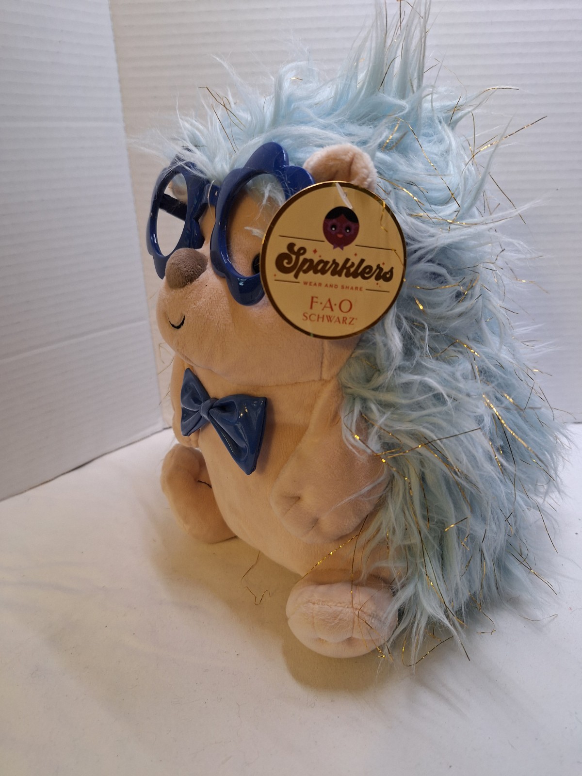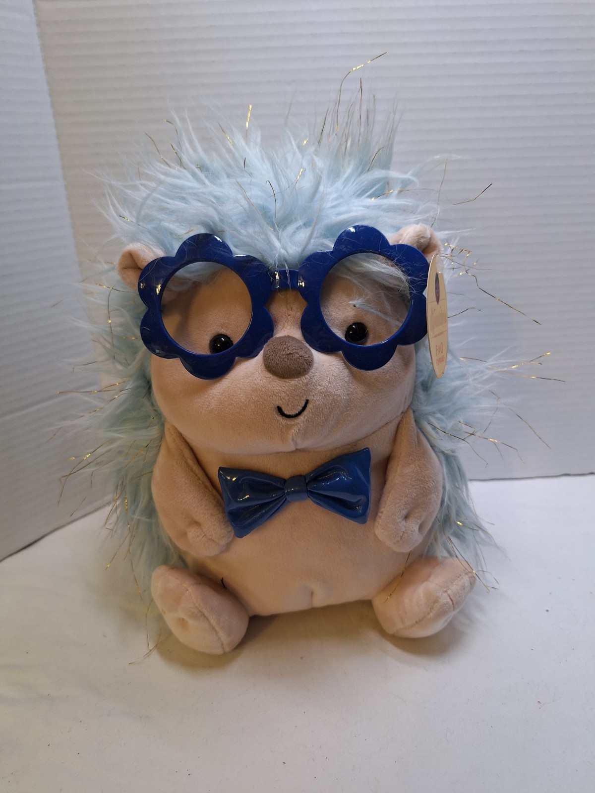 как выглядит FAO Schwarz Sparklers Blue Silver Tan Hedgehod Plush Patent Bow Tie Glasses 10" фото