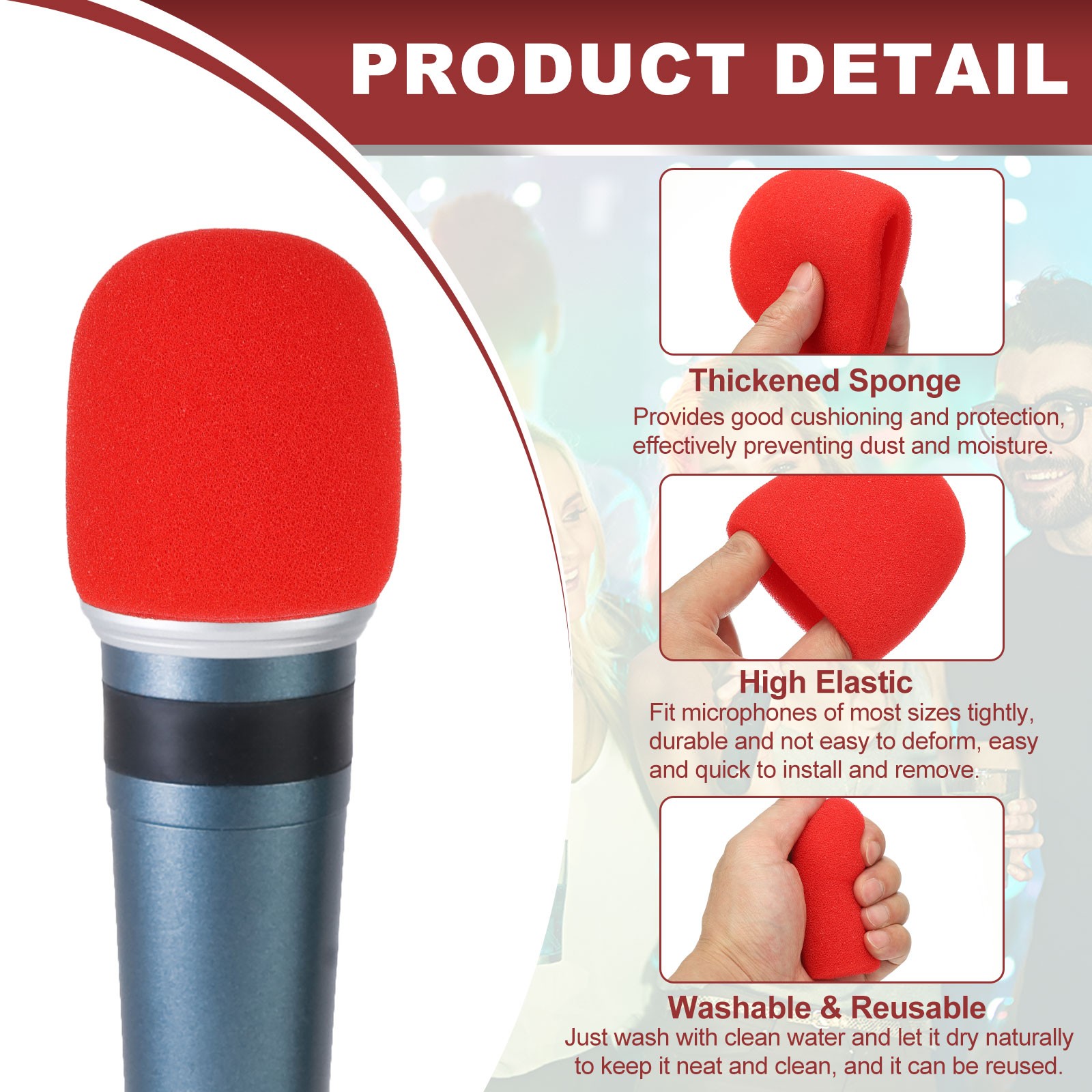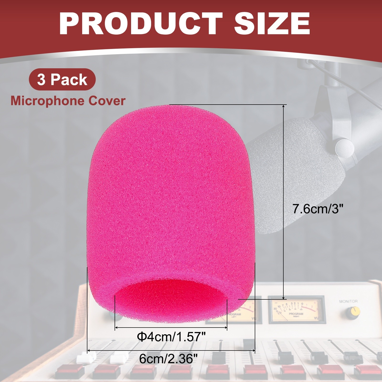 Microphone Cover, Sponge Foam Mic Cover, 3 Pack 3 Rose Red