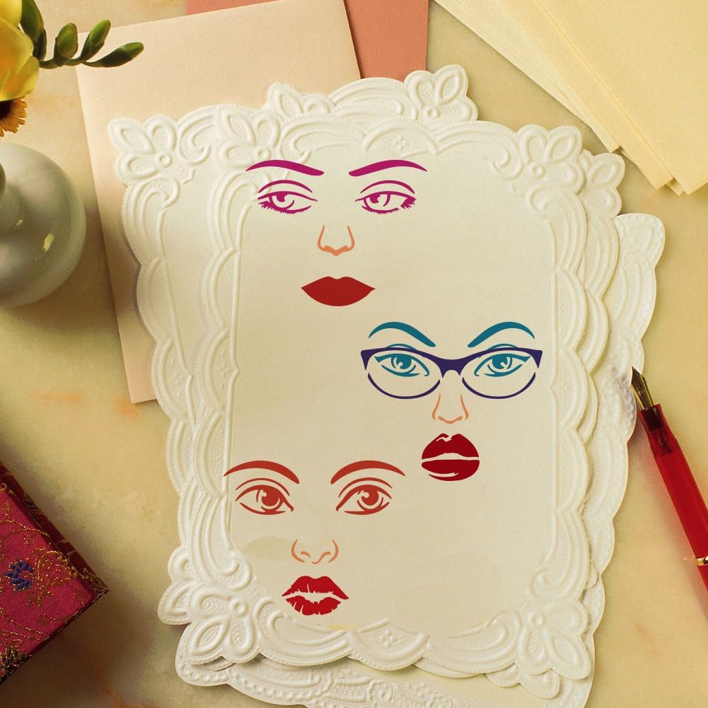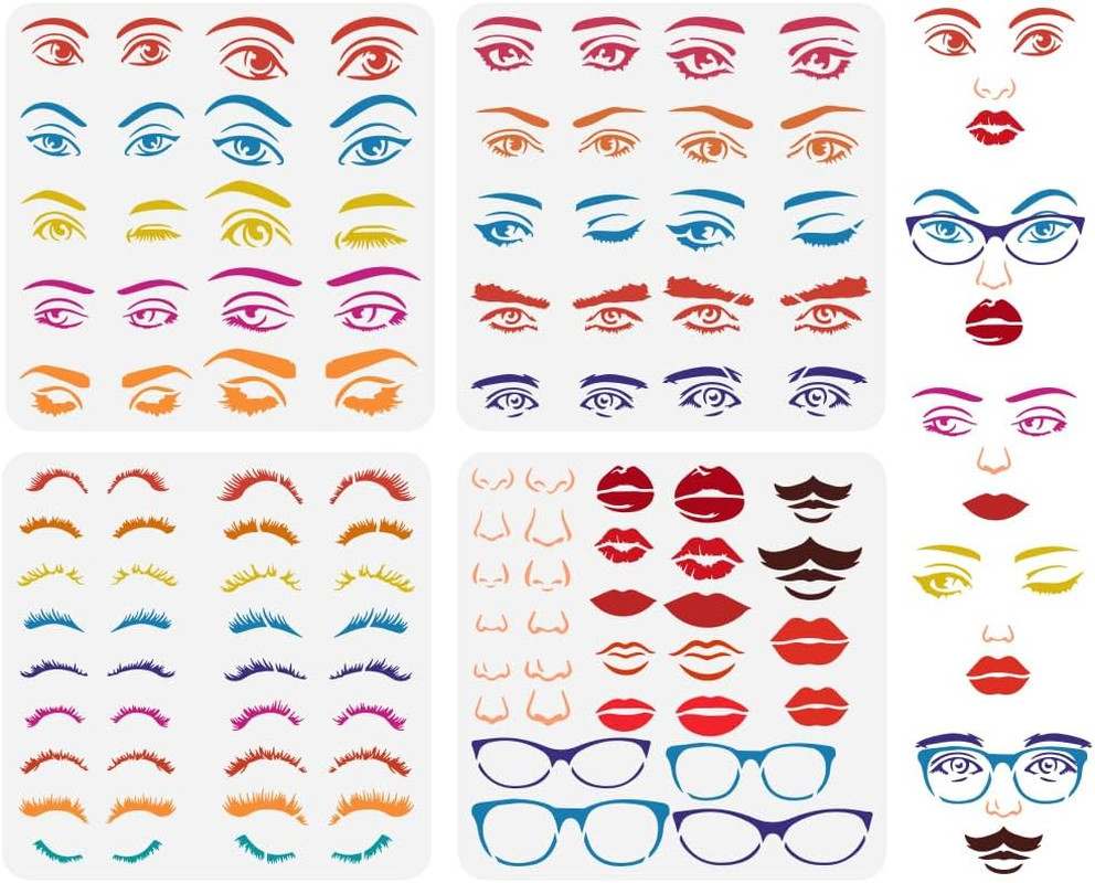 4PCS Combination Facial Features Painting Stencil 11.8X11.8 Inch Reusable Eyes N