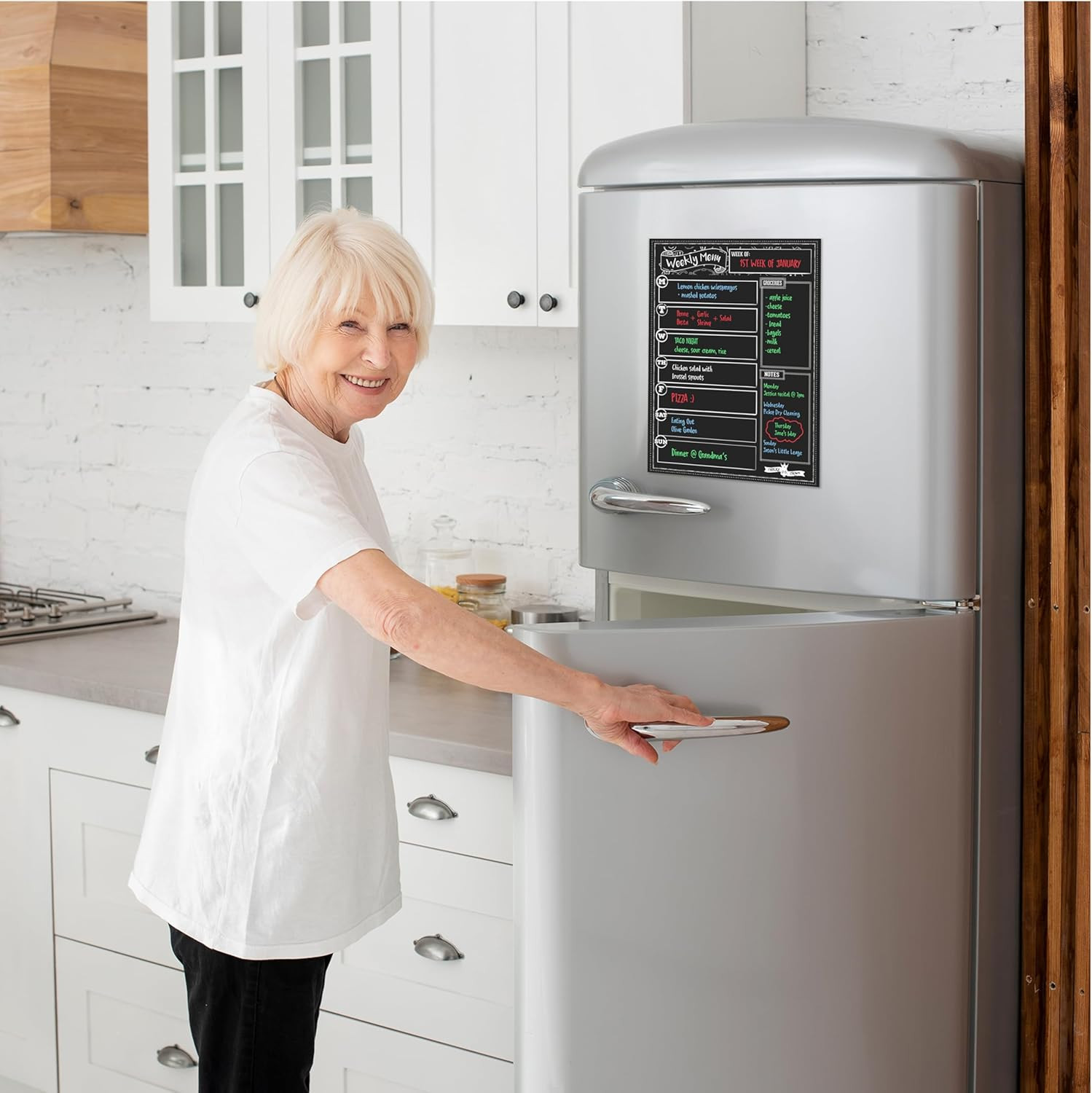 CHALKY CROWN Magnetic Dry Erase Menu Board for Fridge Includes 4 Liquid Chalk Ma