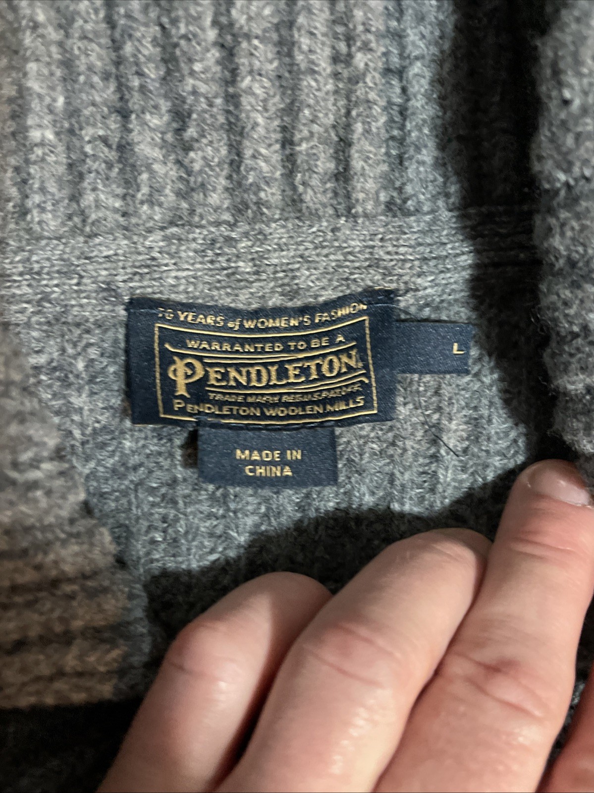 как выглядит VTG Pendleton Cardigan Belt Lambs Wool L Gray Button Collar фото