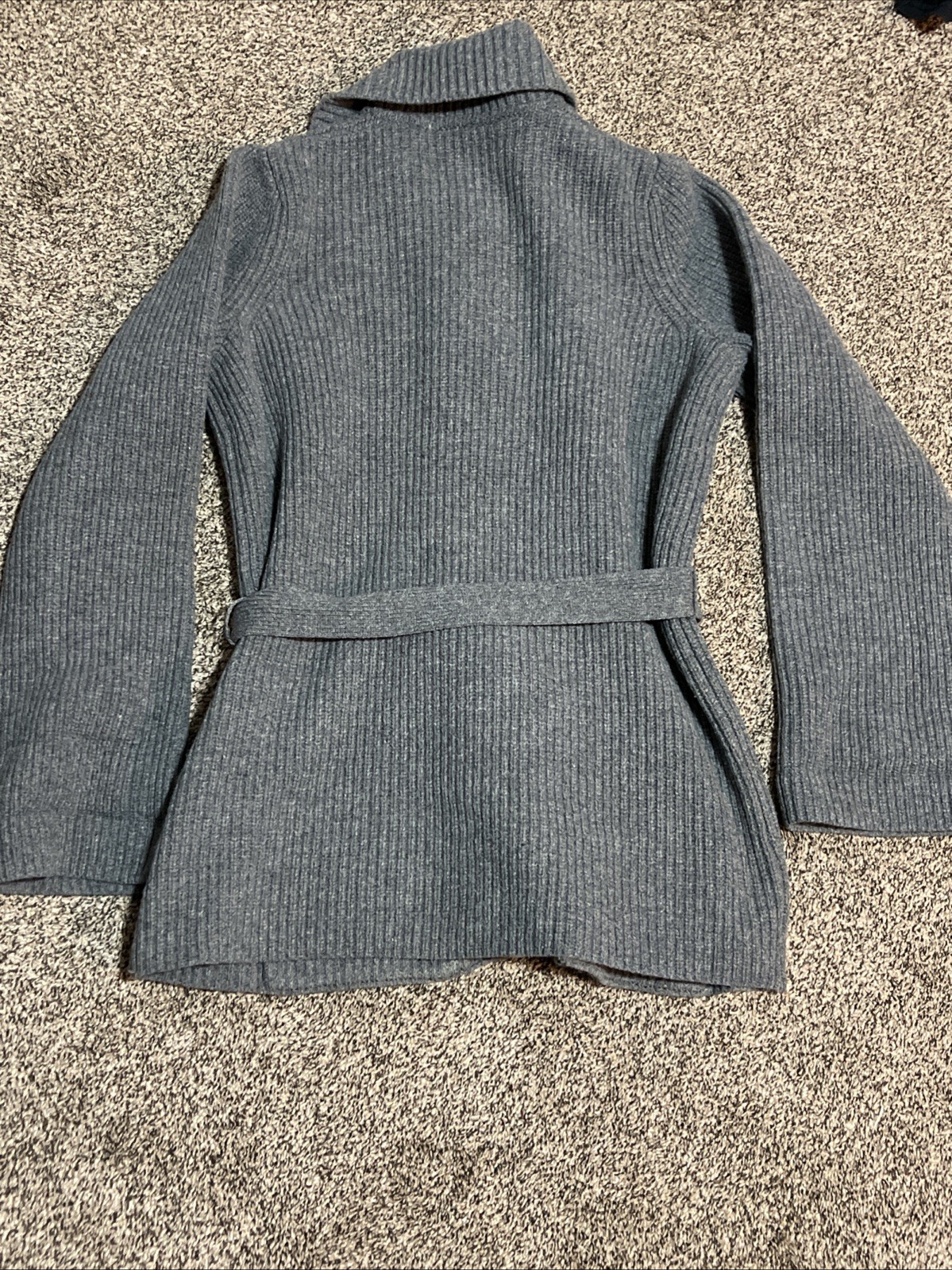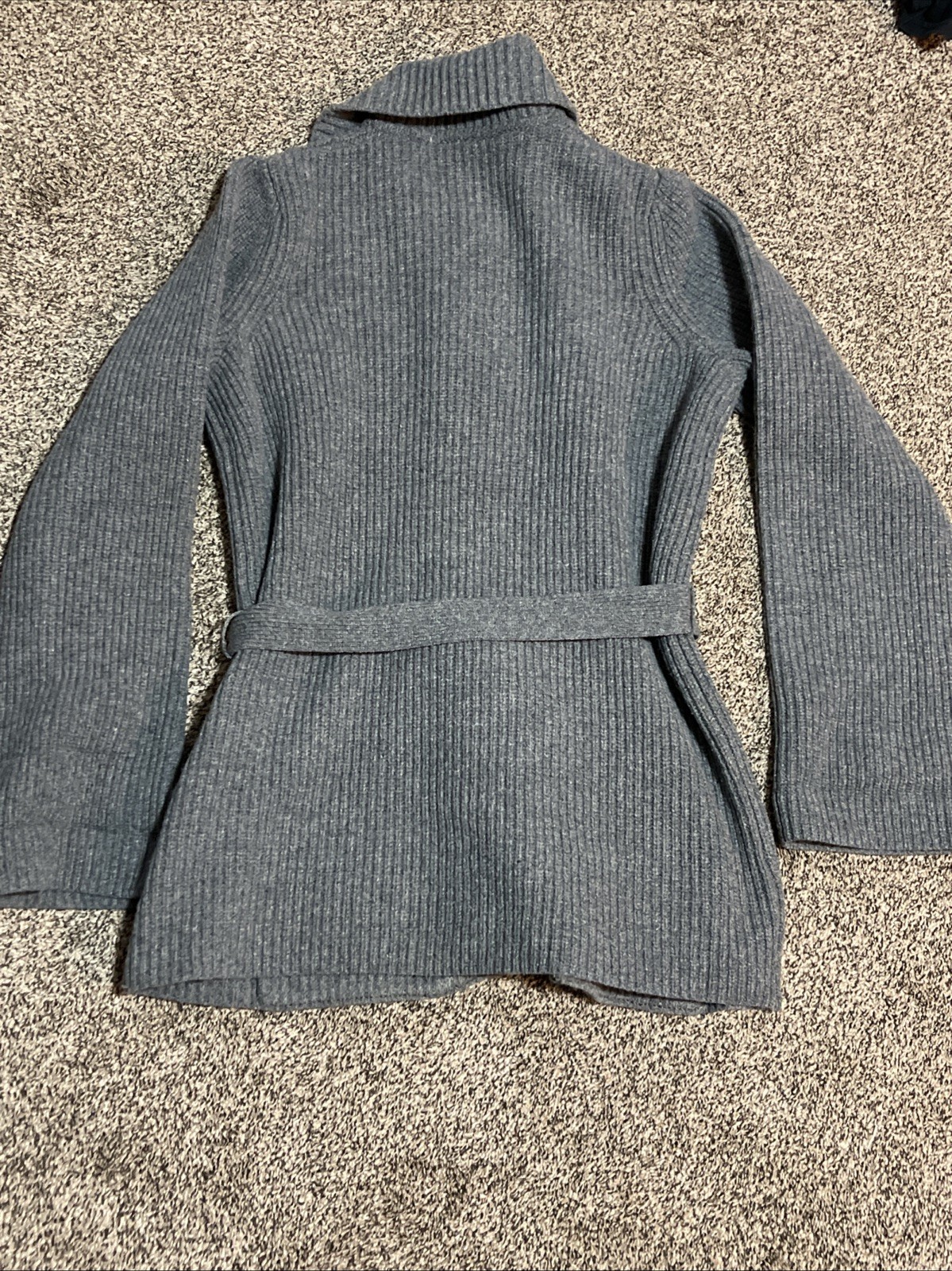 VTG Pendleton Cardigan Belt Lambs Wool L Gray Button Collar