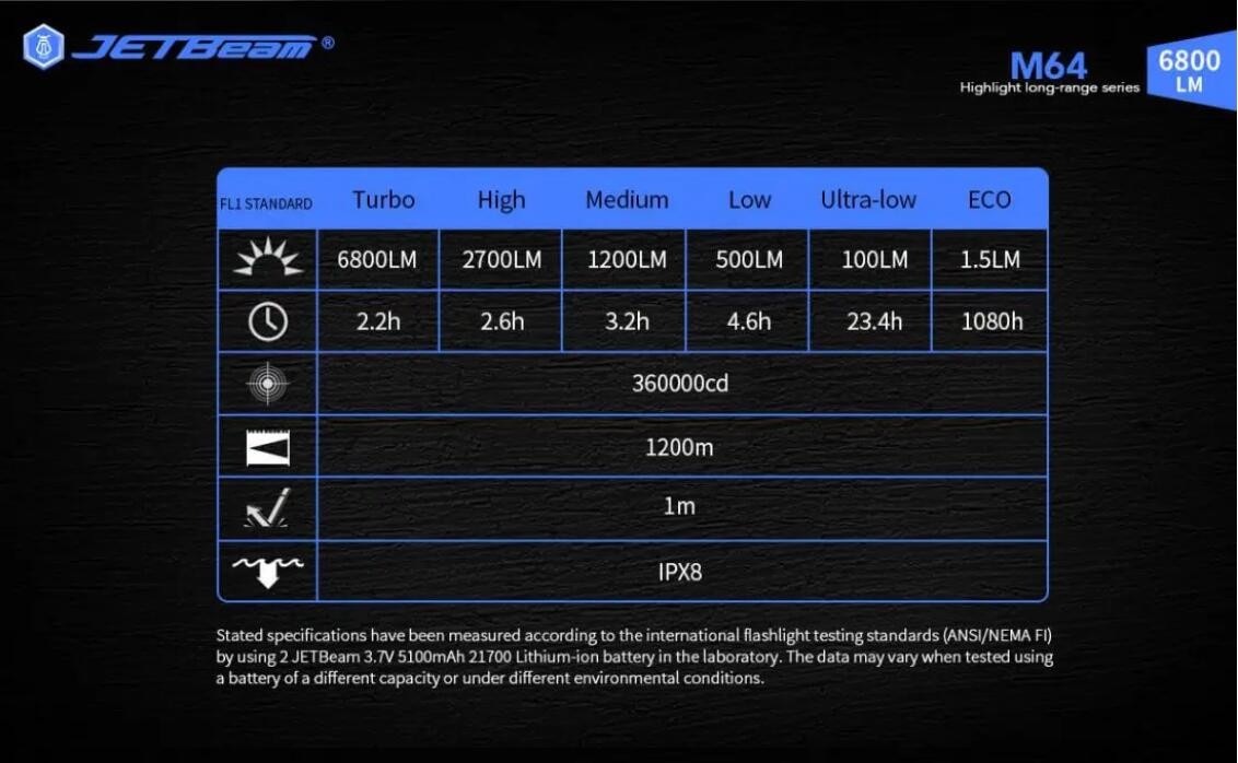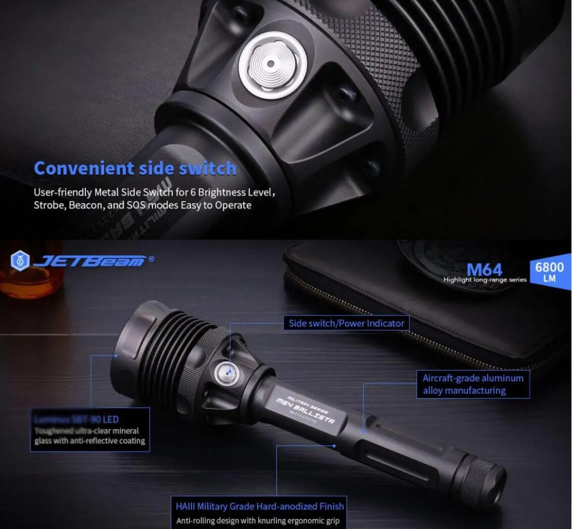 JETBeam M64 Long Throw Range LED Flashlight 30W LED 6800 Lumen 1200Meter