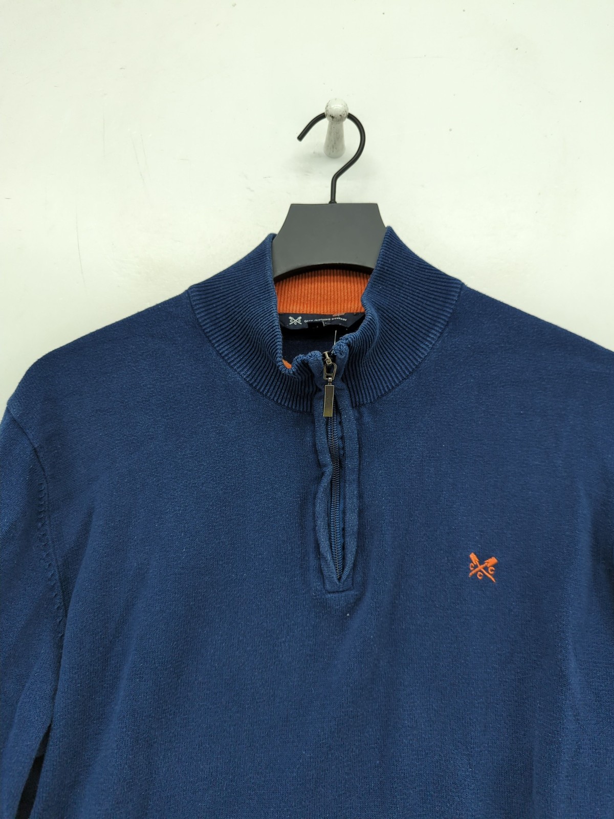 Crew Clothing Men's Jumper L Blue 100 Cotton High Neck Pullover