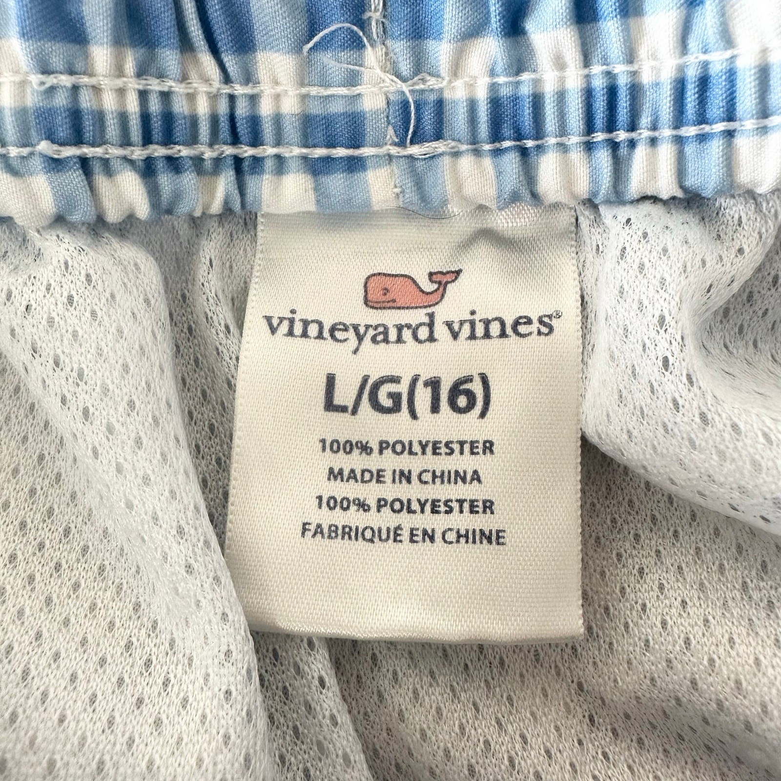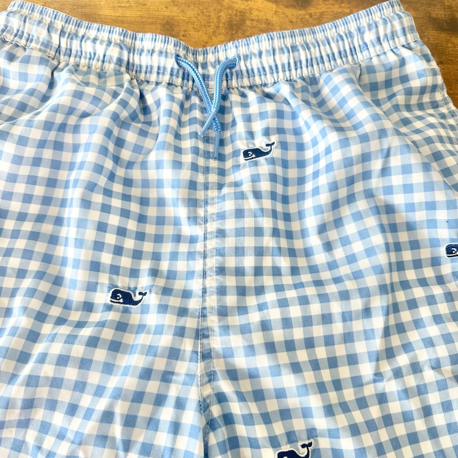 VINEYARD VINES Boys Gingham Whale Embroidered Chappy Trunks Large 16 EUC