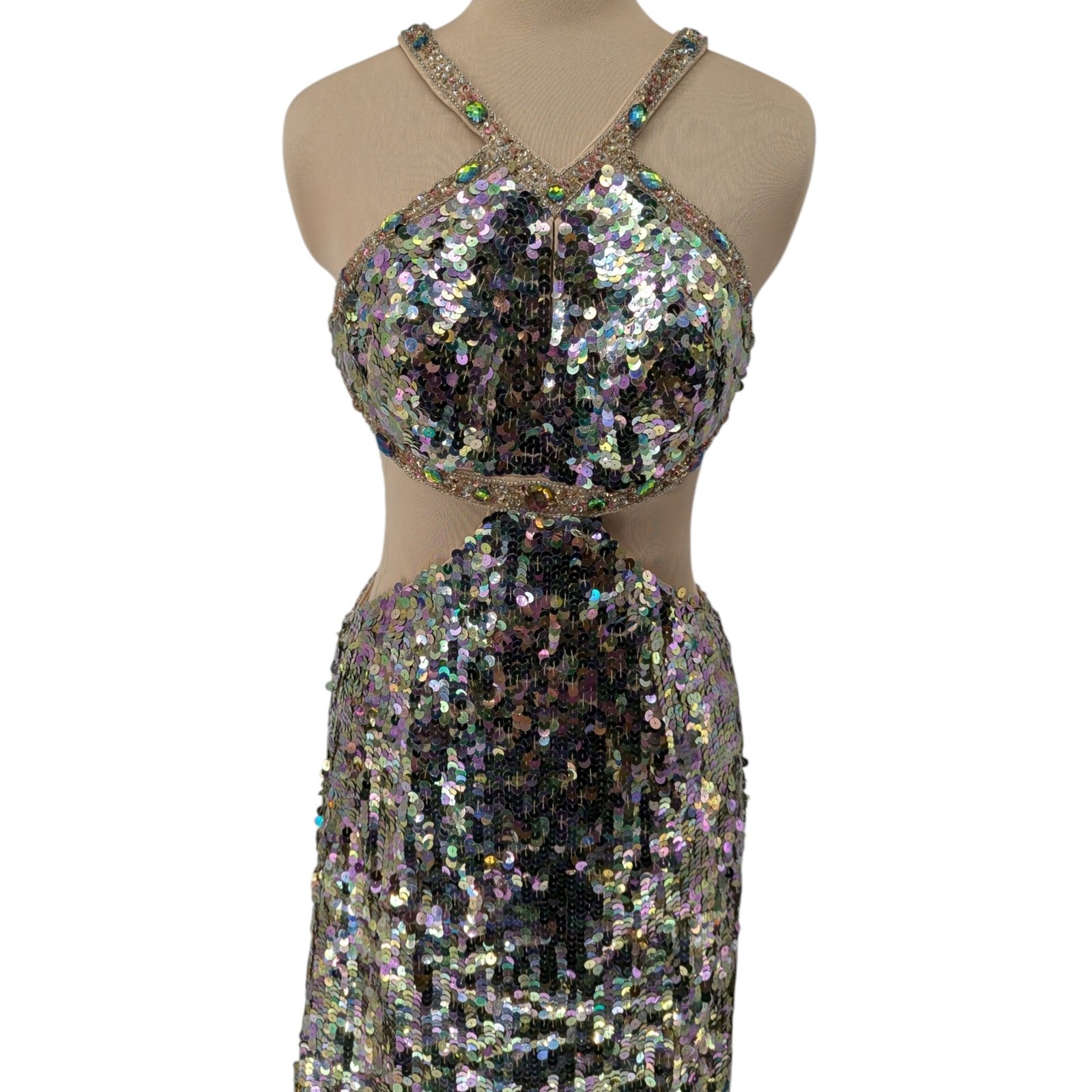 Sherri Hill Sequin Cutout Gown Size 6 Nude Iridescent Mermaid Prom Dress