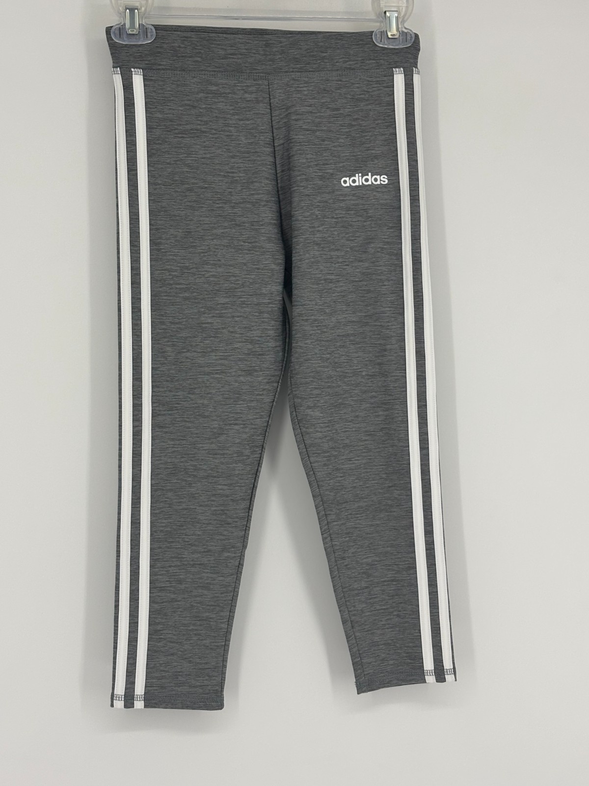 NWOT Adidas Girls Gray White 3-Stripe Legging Pants Youth Size Medium 10/12