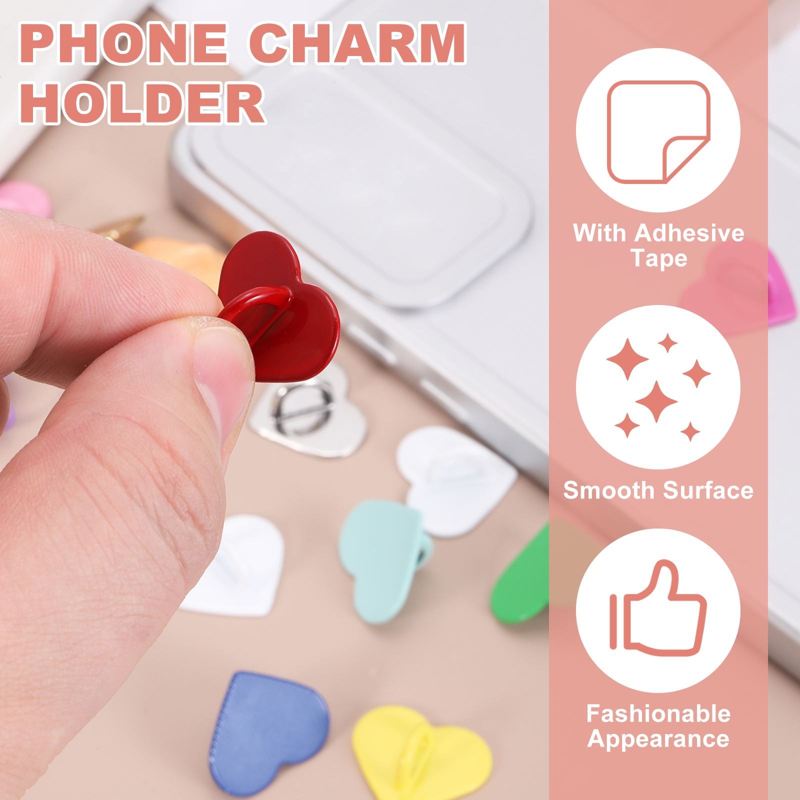 12 Pcs Heart Phone Charm Hook, Light Brown/Brown/White/Black
