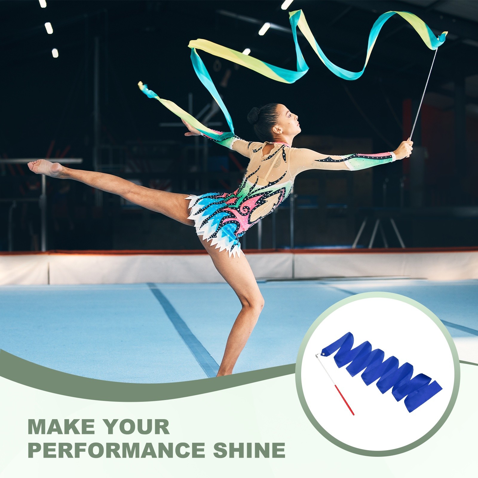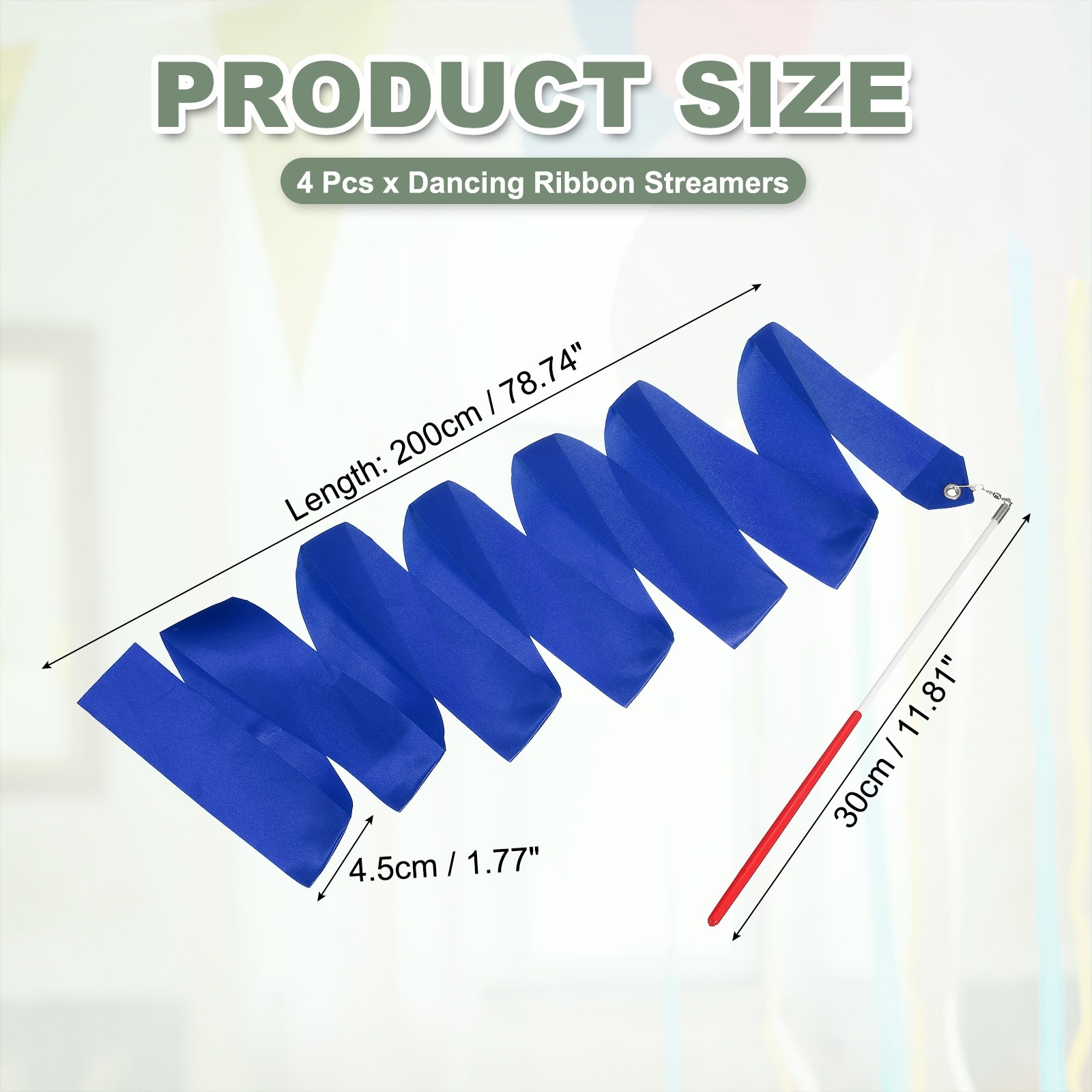 как выглядит 4 Pcs Dance Ribbons 78.7" Gymnastics Ribbon Streamers Red Wand, Sapphire Blue фото