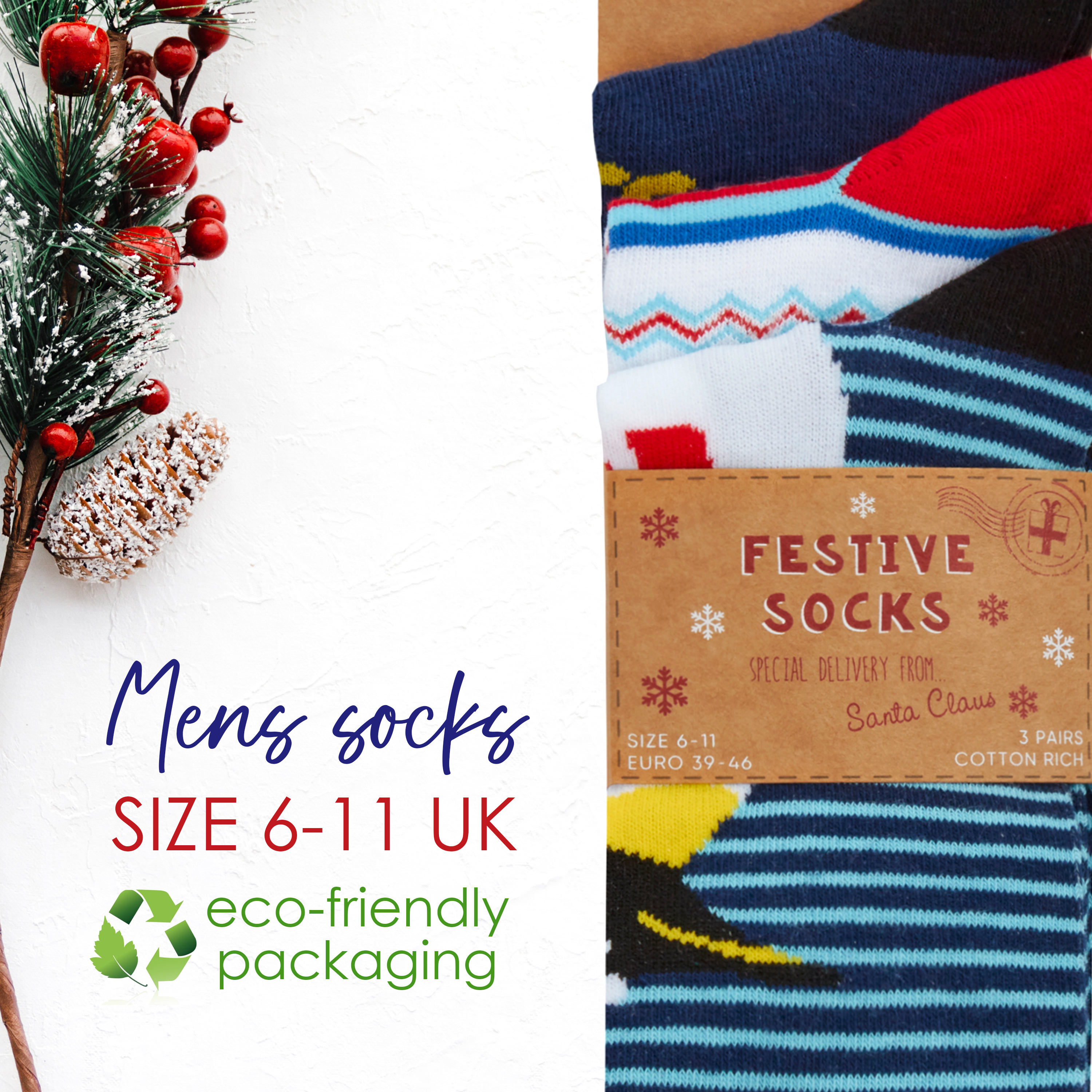 3 Pairs Mens Christmas Socks Novelty Xmas Socks 6-11 Stocking Filler Gift Idea