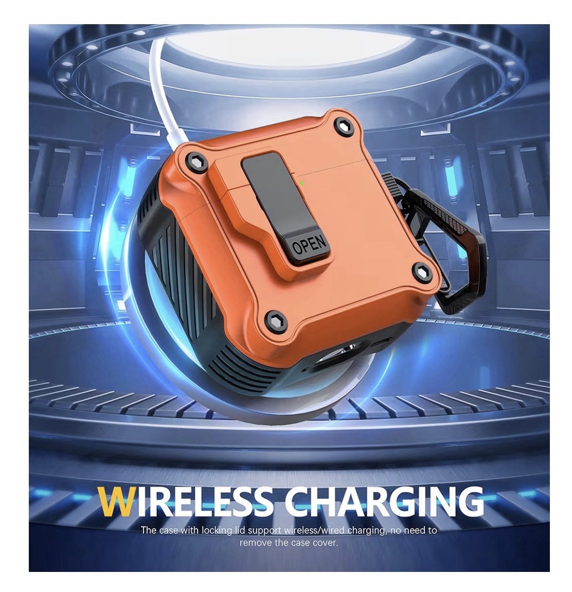RFUNGUANGO for AirPods 4th Case Cover with Secure Lock Clip Shockproof Orange