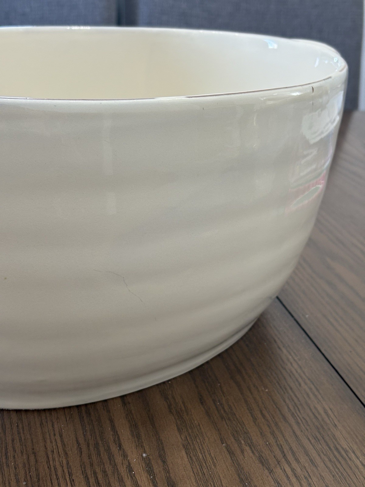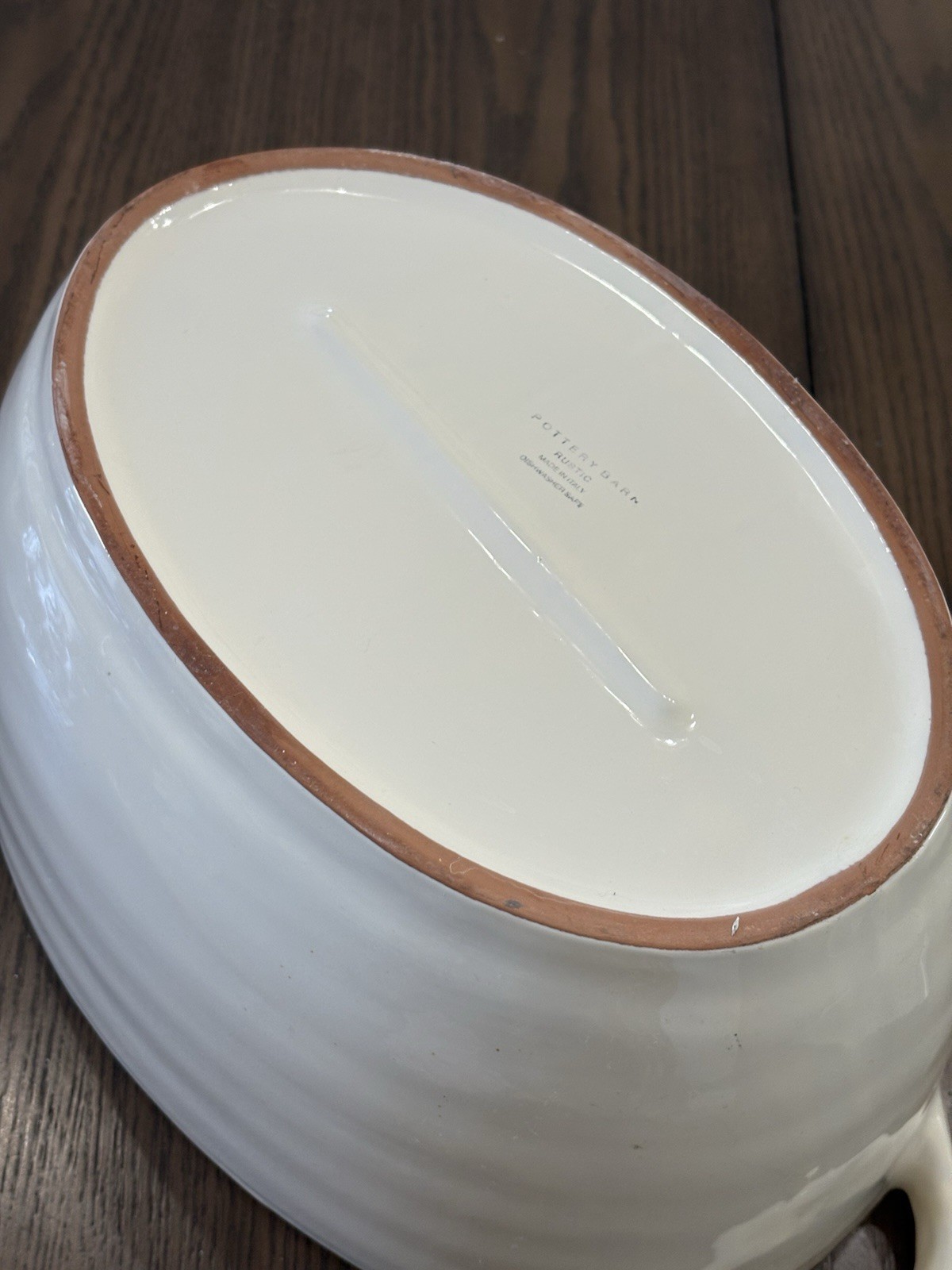 как выглядит Pottery Barn Rustic Large 13x9x7 Ceramic Bowl Container With Handles Ivory фото