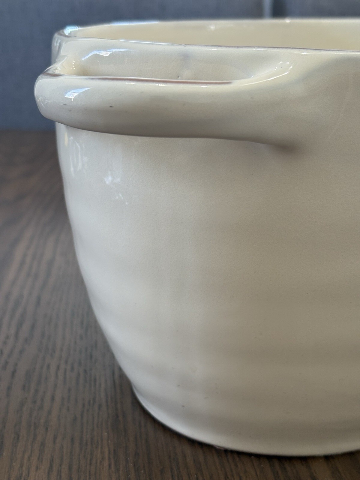 Pottery Barn Rustic Large 13x9x7 Ceramic Bowl Container With Handles Ivory