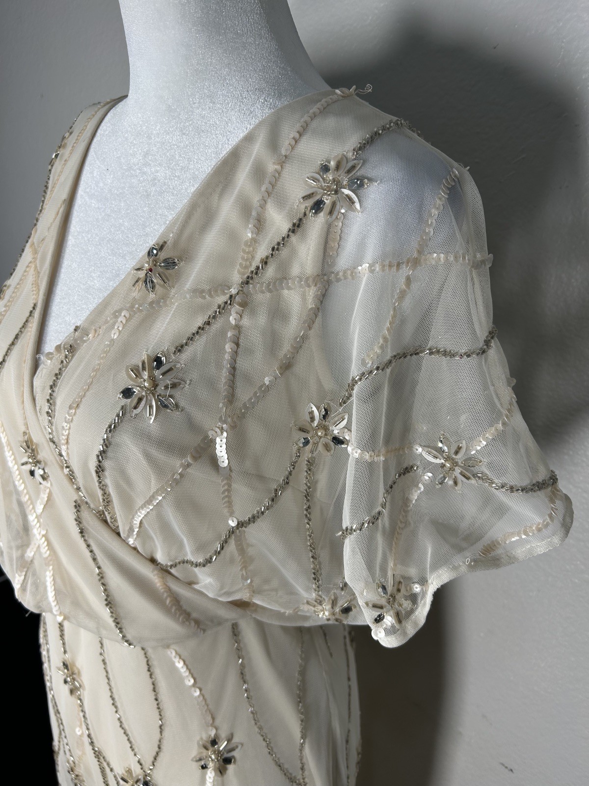 ADRIANNA PAPELL Women's Ivory Beaded Embellished Surplice Blouson Maxi Gown 4