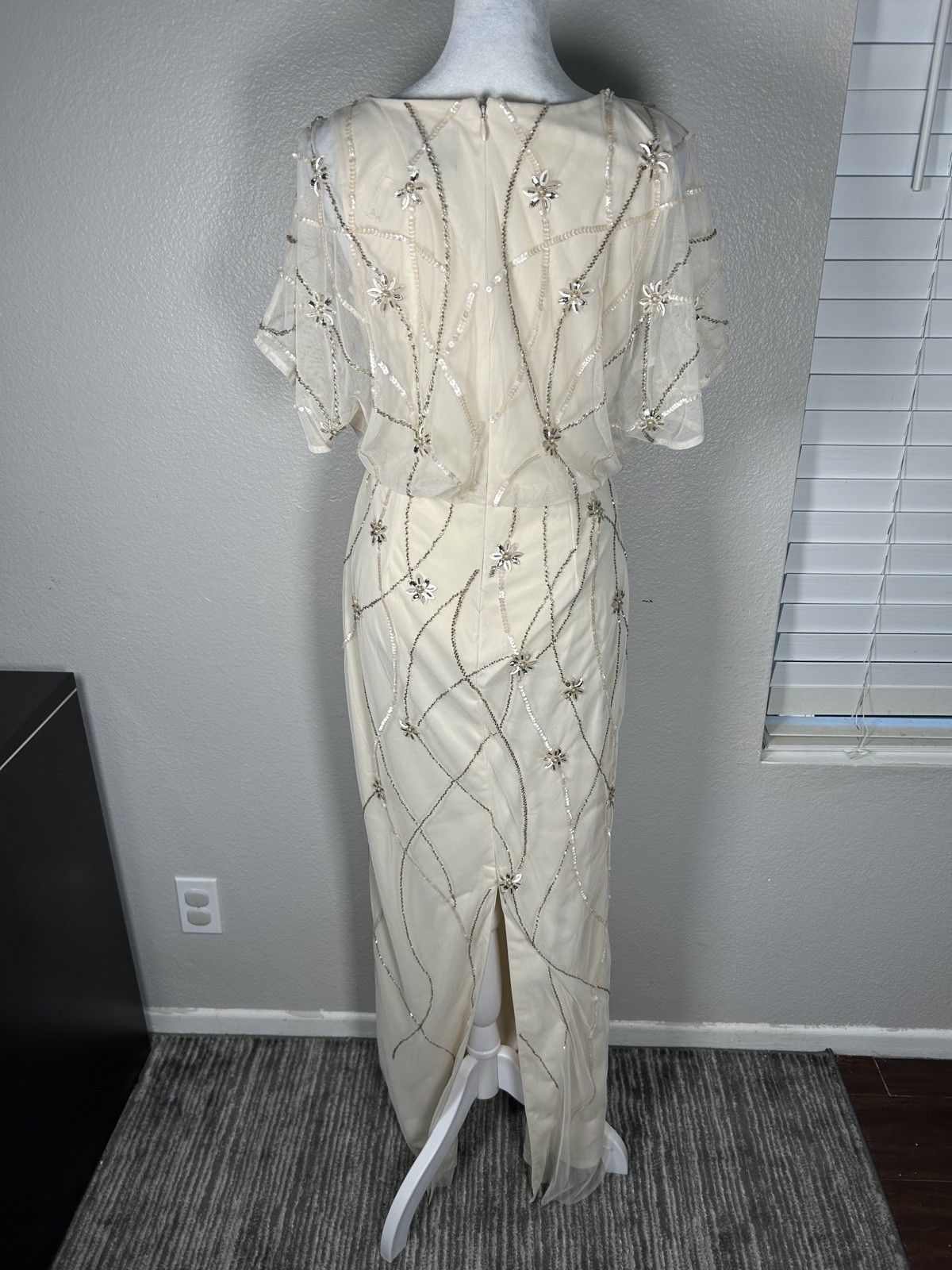 как выглядит ADRIANNA PAPELL Womens Ivory Beaded Embellished Surplice Blouson Maxi Gown 4 фото