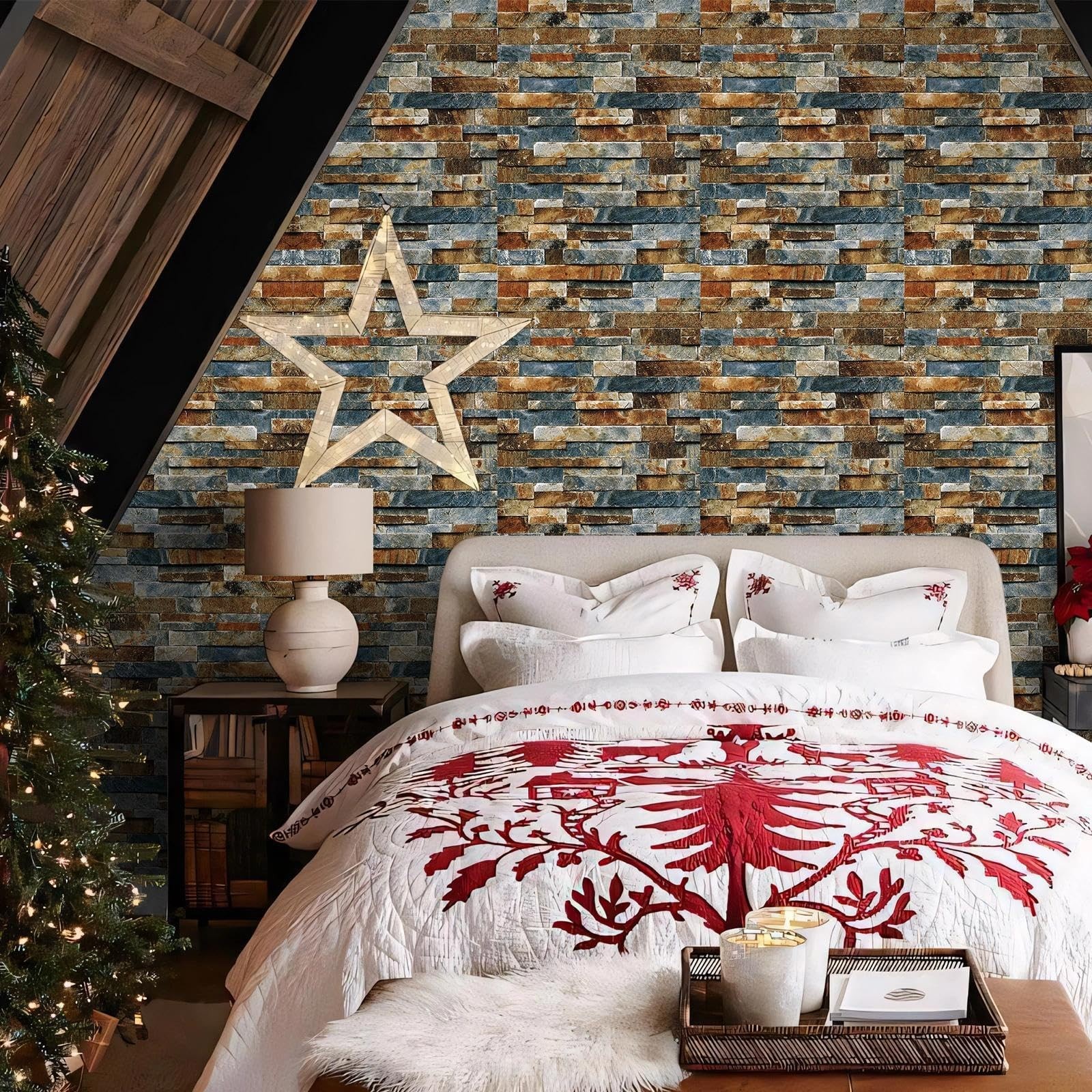 CAX Stone Peel and Stick Wallpaper Faux Stone Wallpaper 17.5 X 120 Brick Co...