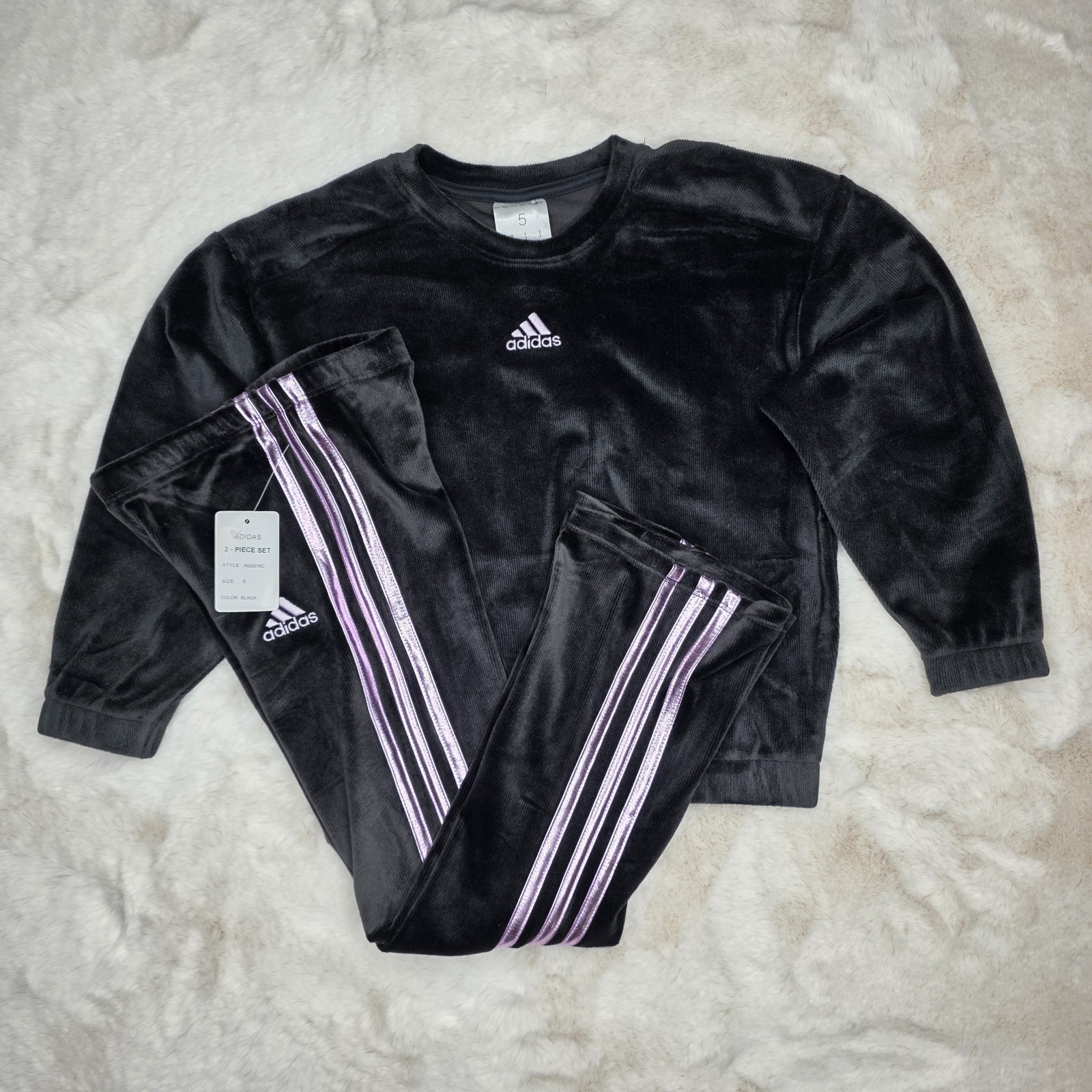 Adidas Soft Velour Sweatshirt Leggings 2 Piece Set Black/Pink Girls Sz 4 NWT