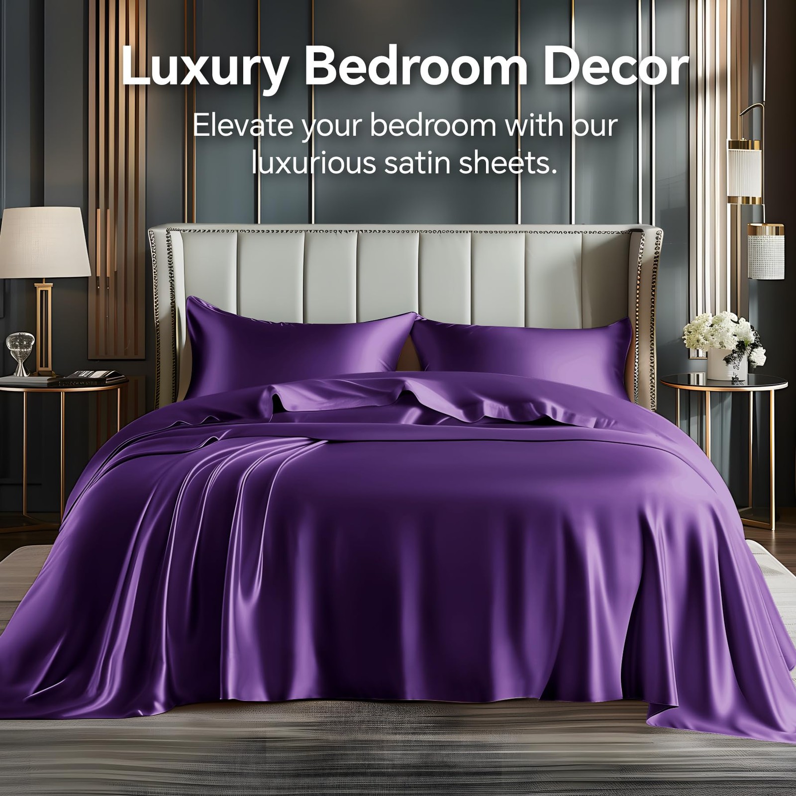 Satin Sheet Set Luxury Soft King 4Pcs Deep Pocket Hair Skin Care Bedding