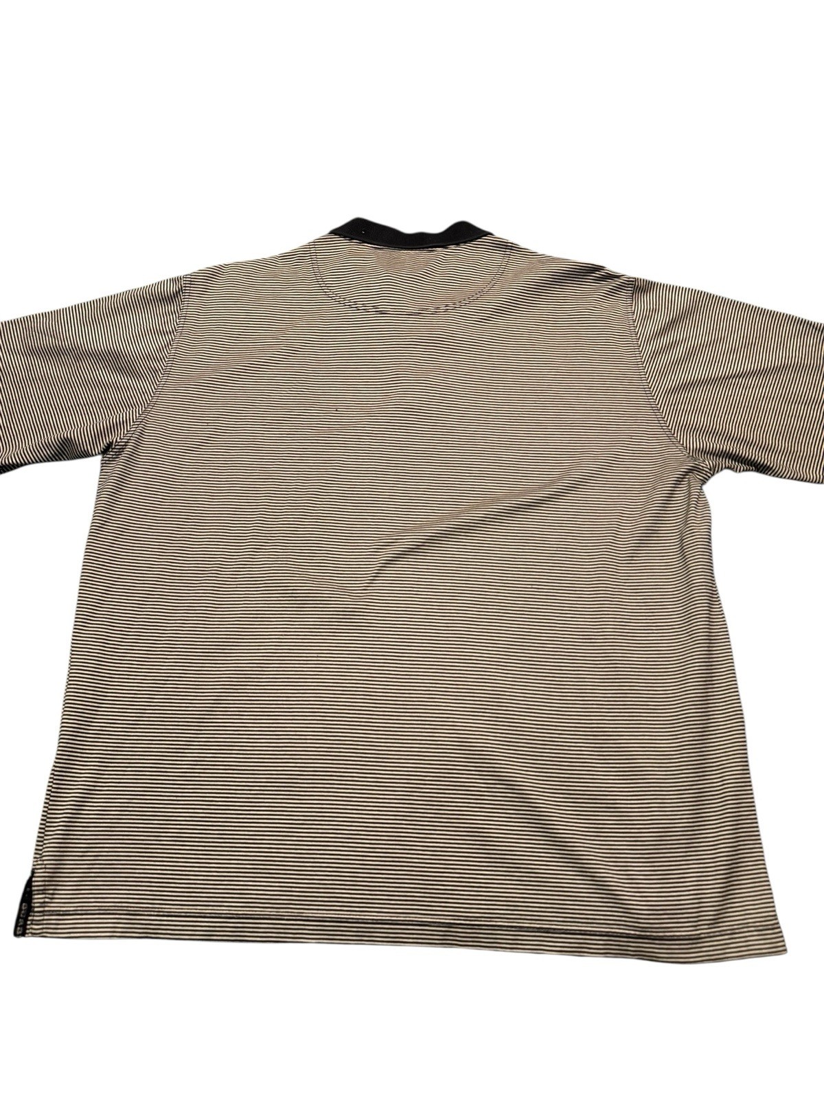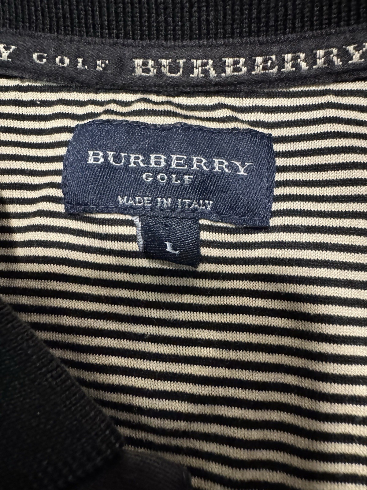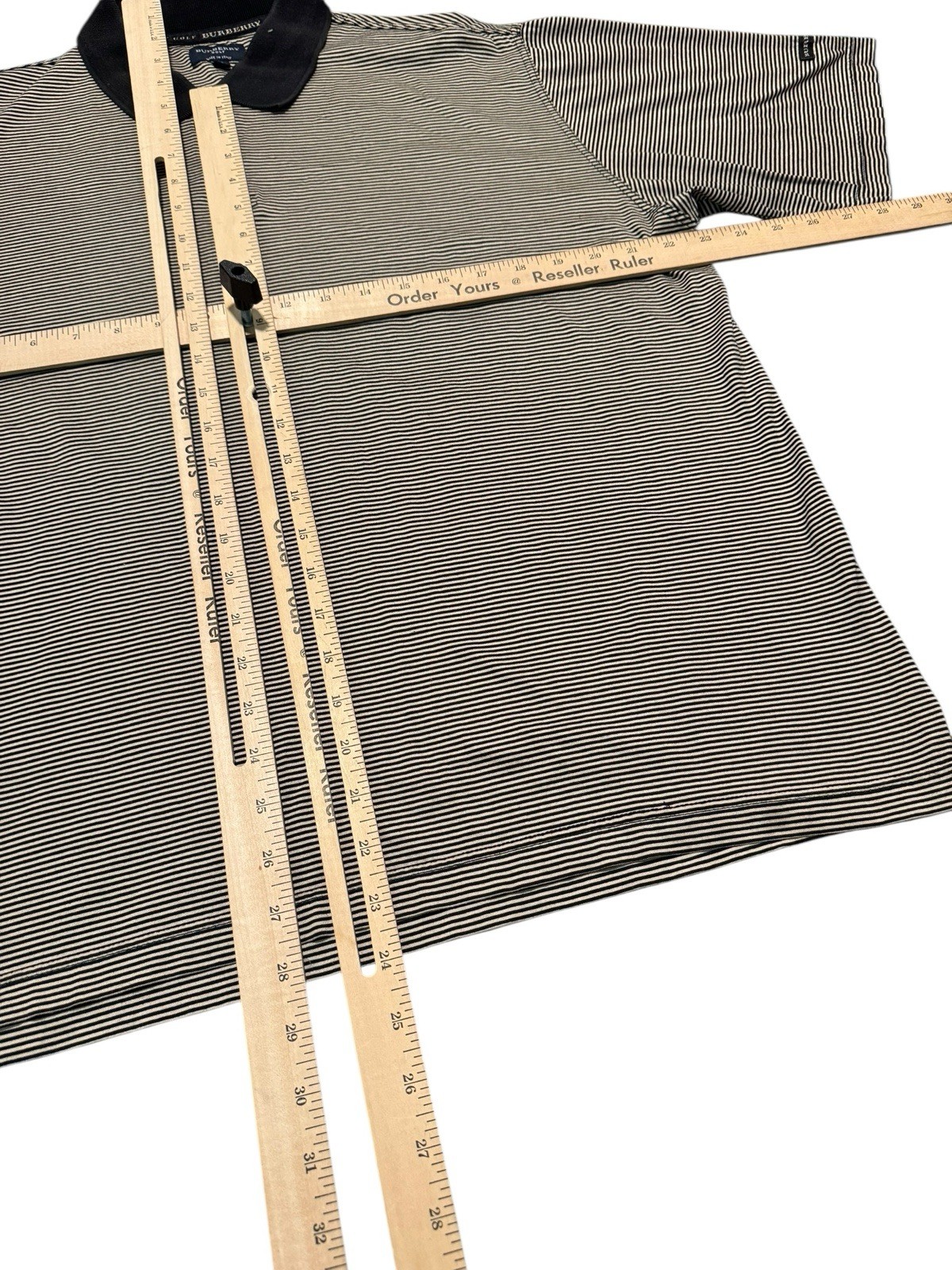 Vtg BURBERRY GOLF Polo Shirt L Striped Black Cream Made in Italy 100 Cotton