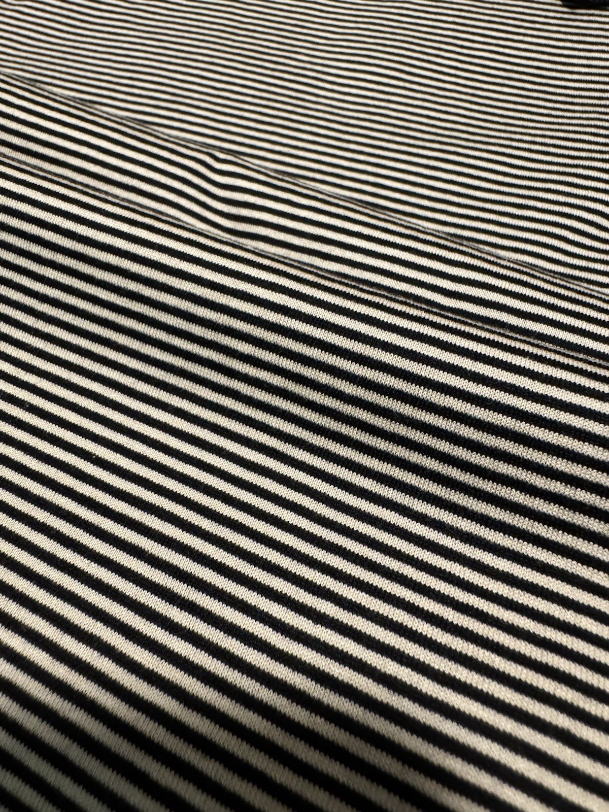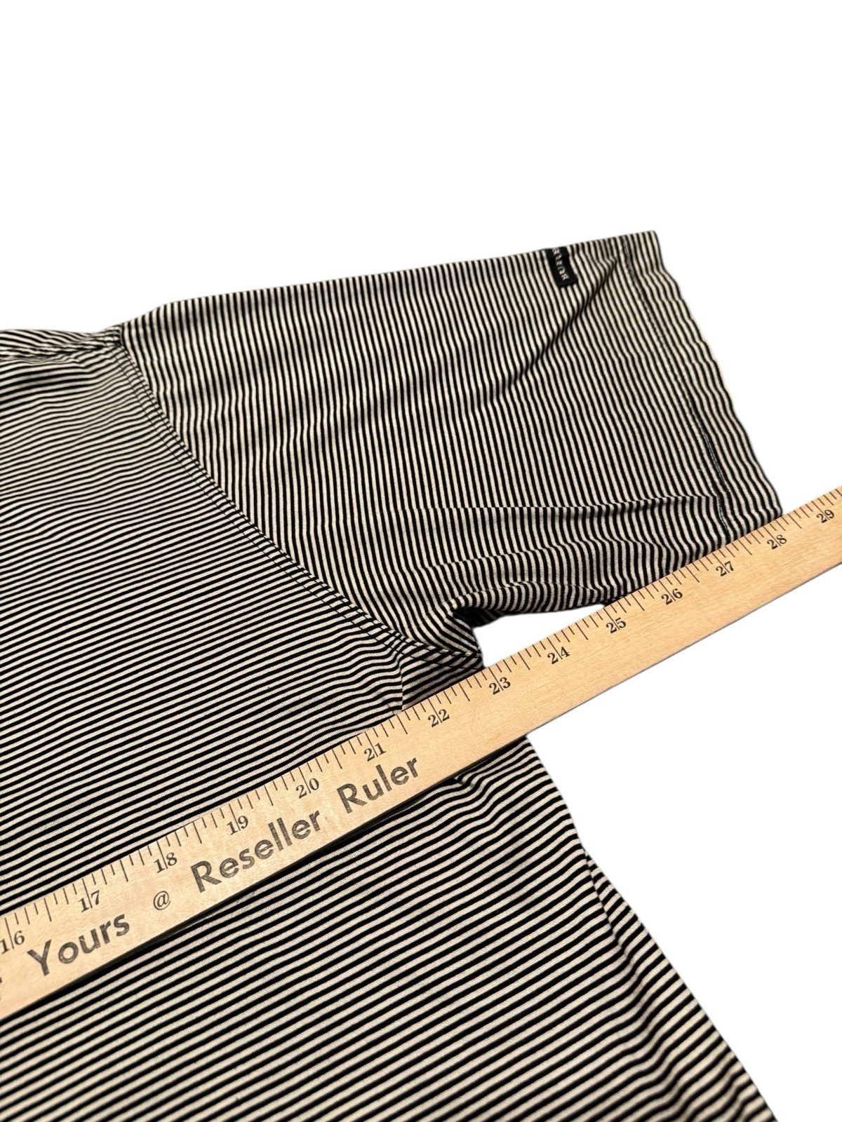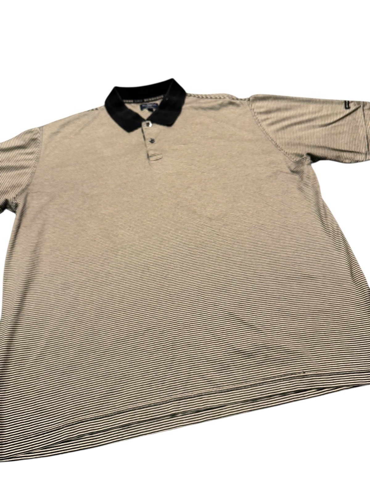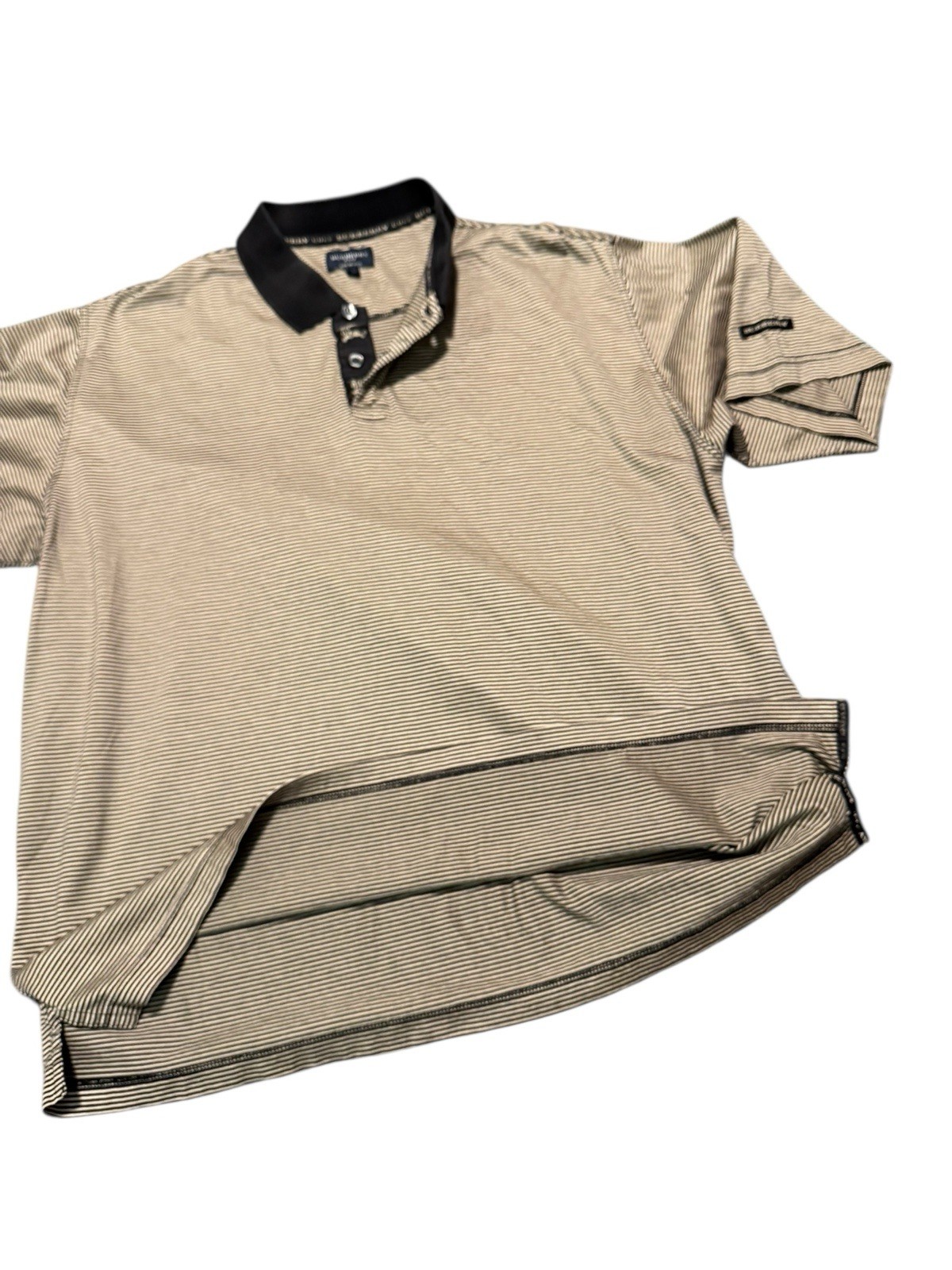 Vtg BURBERRY GOLF Polo Shirt L Striped Black Cream Made in Italy 100 Cotton