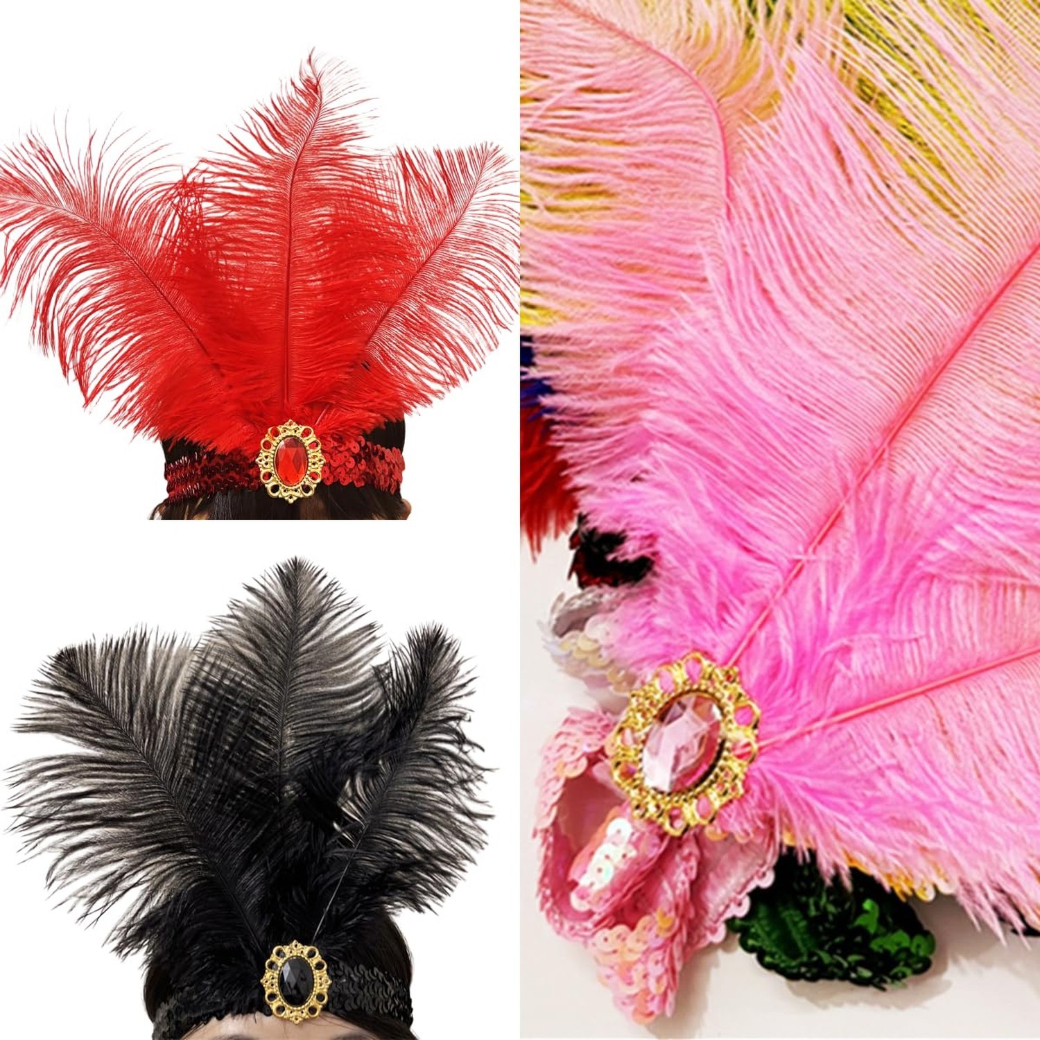 2pcs Sequins Feather Headpiece,1920s Flapper Headband,Mardi Gras Carnival Par...