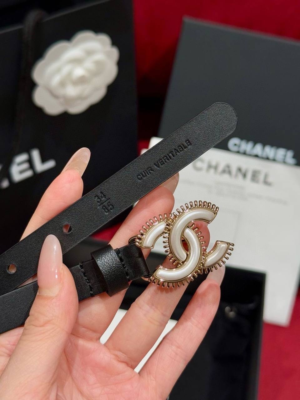 как выглядит CHANEL White Pearl Interlocking CC Logo Black Leather Belt size 80 фото