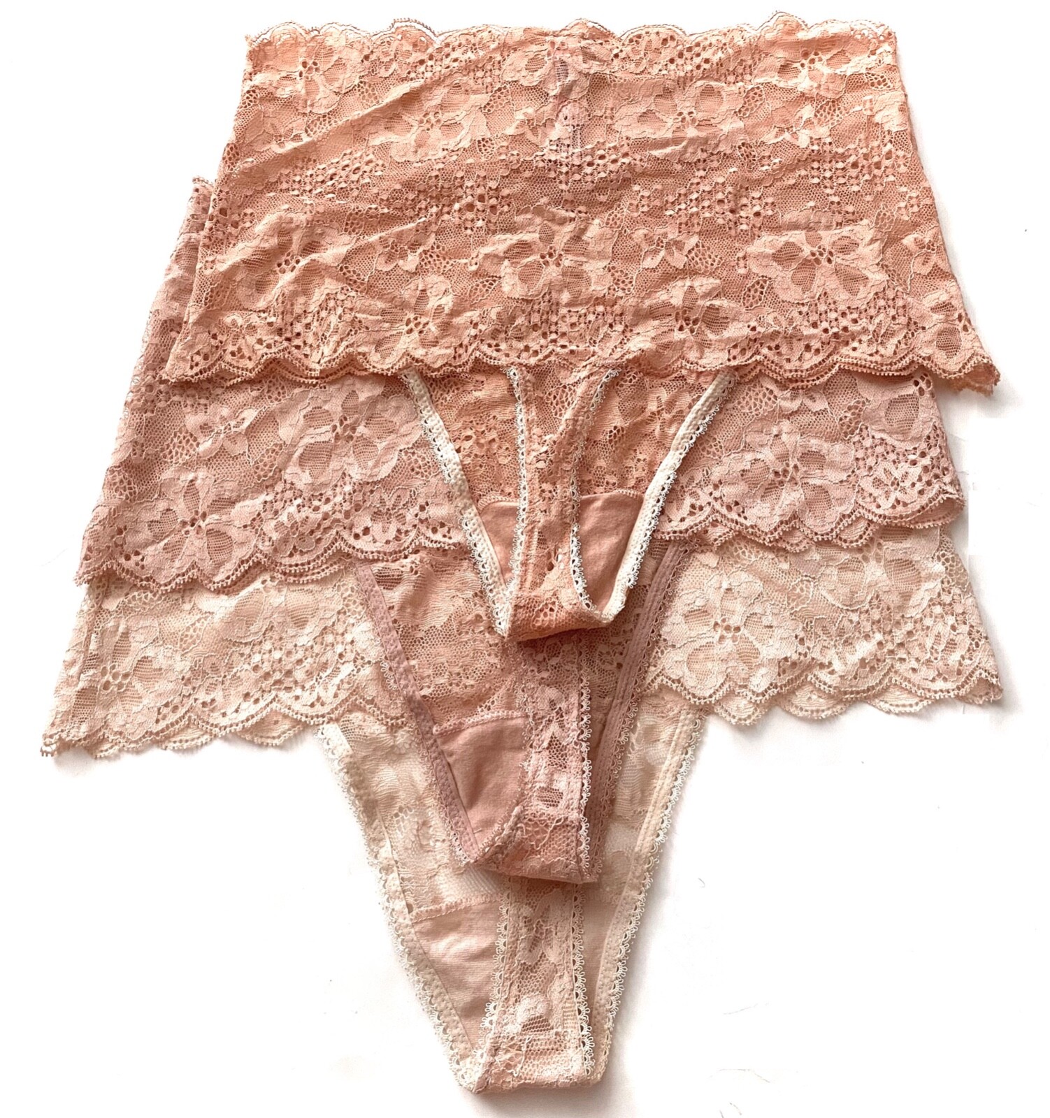 как выглядит Victorias Secret Panties Nwt Floral Lace Lot of 3 High Waist Thong Panty Medium фото