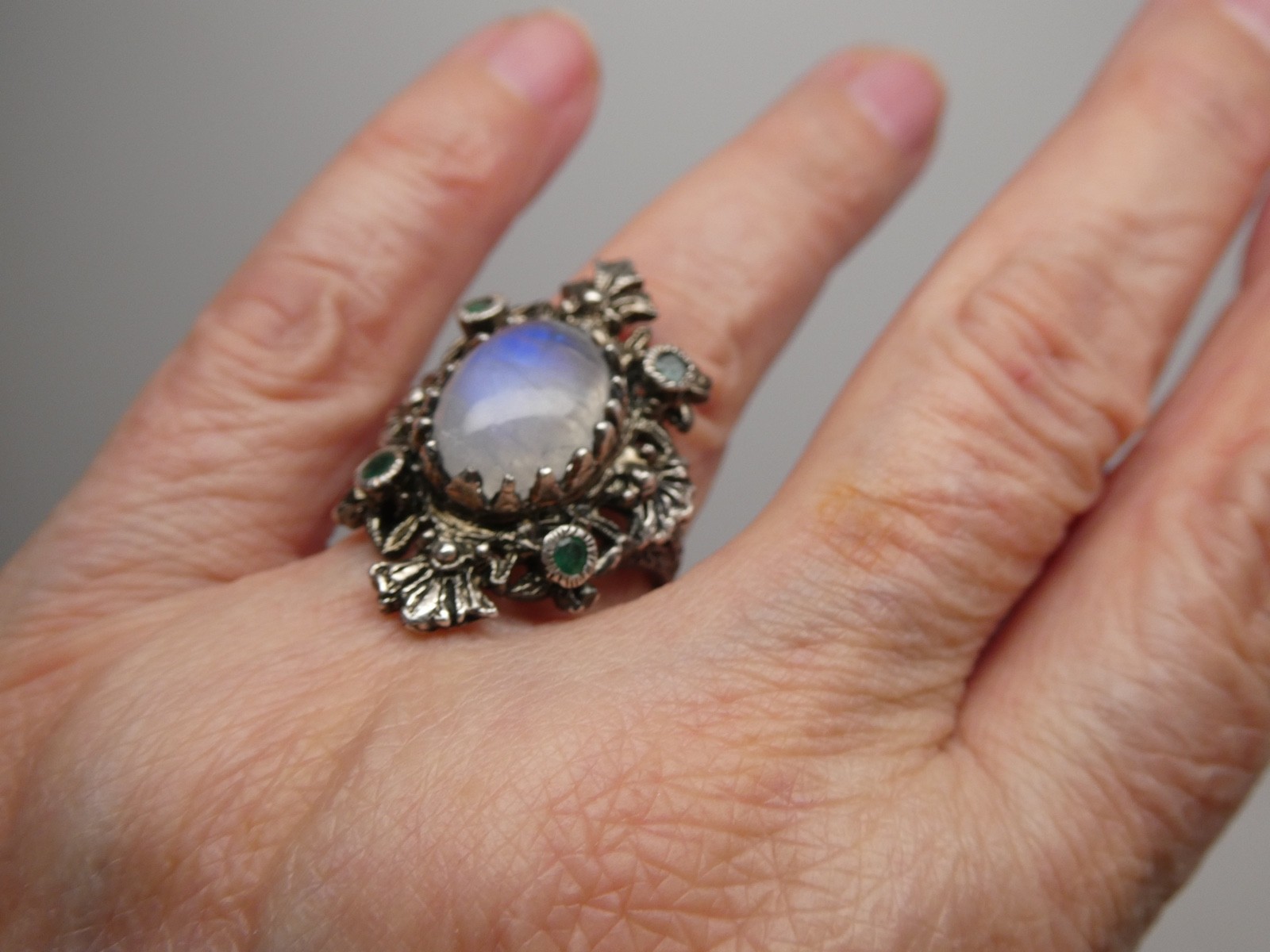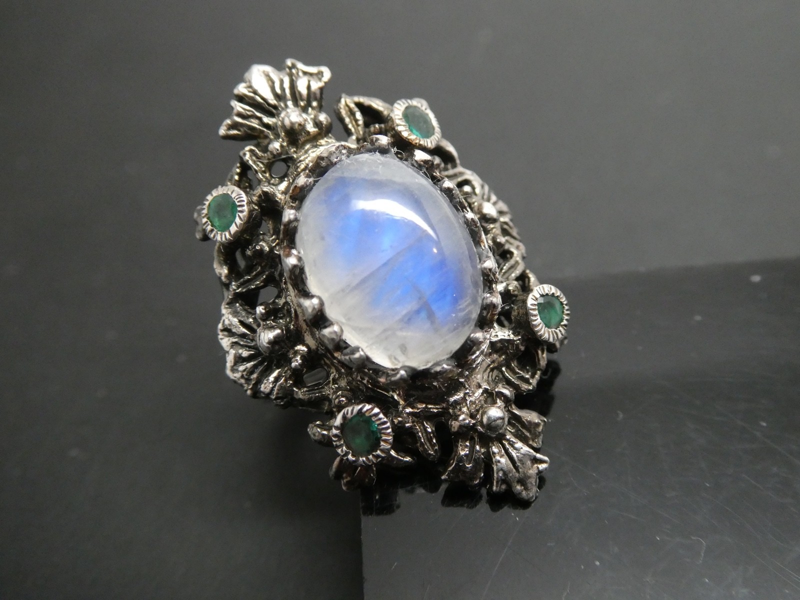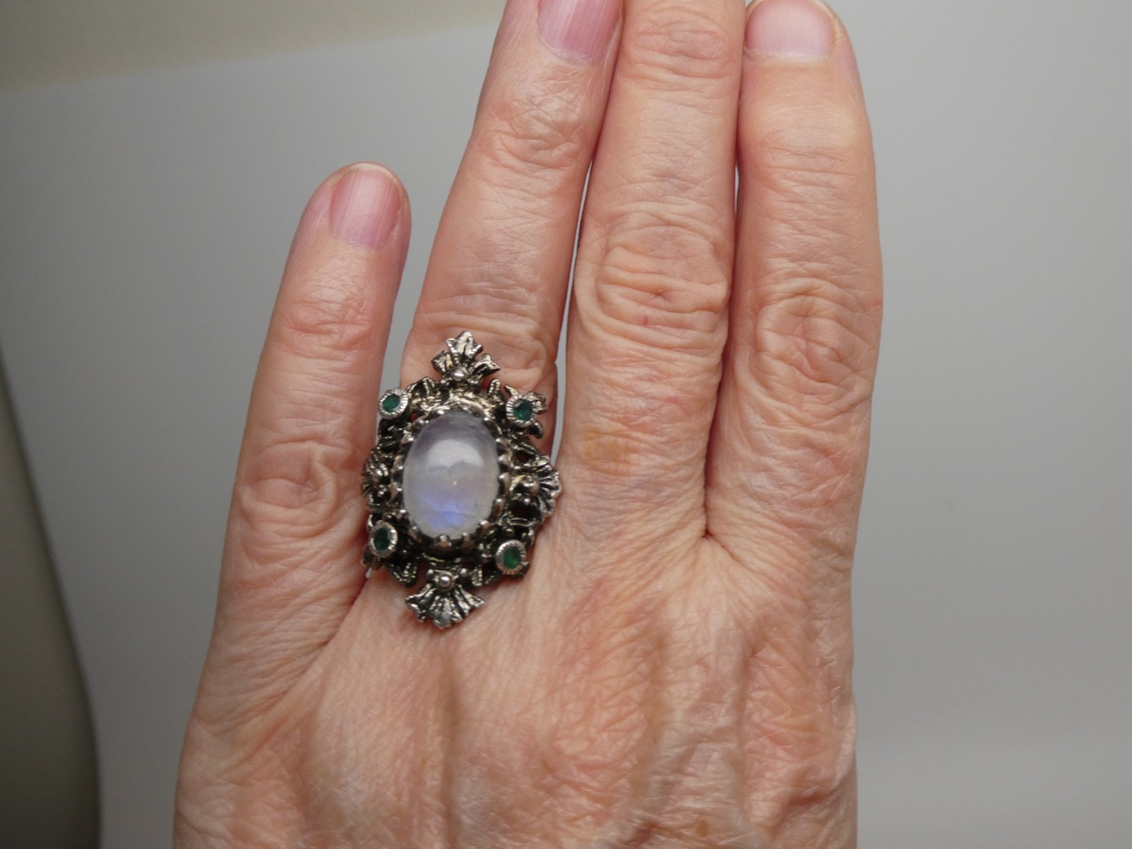 как выглядит Vintage Rainbow Moonstone Gemstone Sterling Silver 925 Ornate RING Size 7 фото