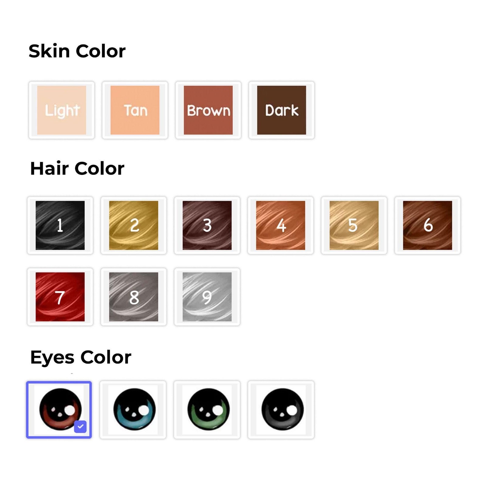 Personalization Instructions: Please provide us these detail💖: 1️⃣ Man: Skin Color–Hair Color–Eyes Color+ Name 2️⃣ Woman: Skin Color–Hair Color–Eyes Color + Name Ex💖: 1. Man: Tan– Hair#2 – Eyes#3, Jack 2. Woman: Light – Hair#4