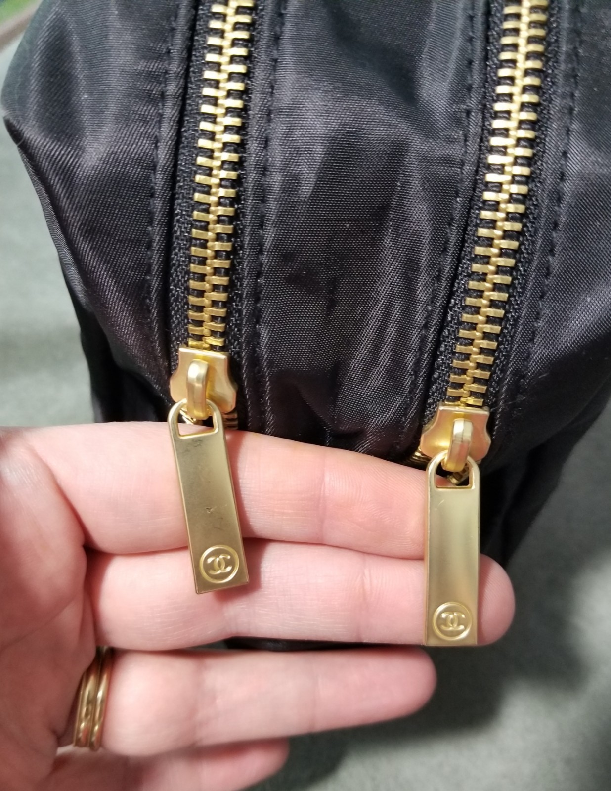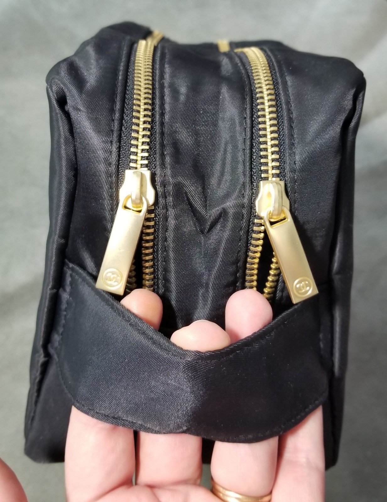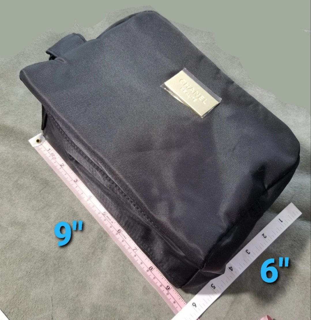 как выглядит Chanel Beaute Large Toiletry Trousse Makeup Bag Black Nylon READ DETAILS фото
