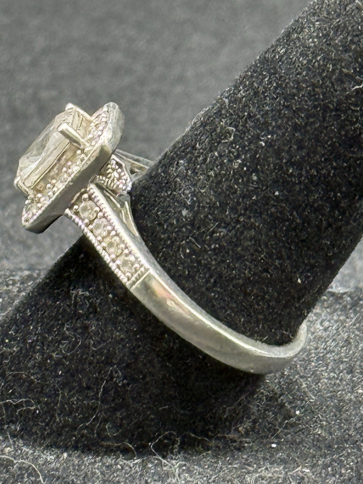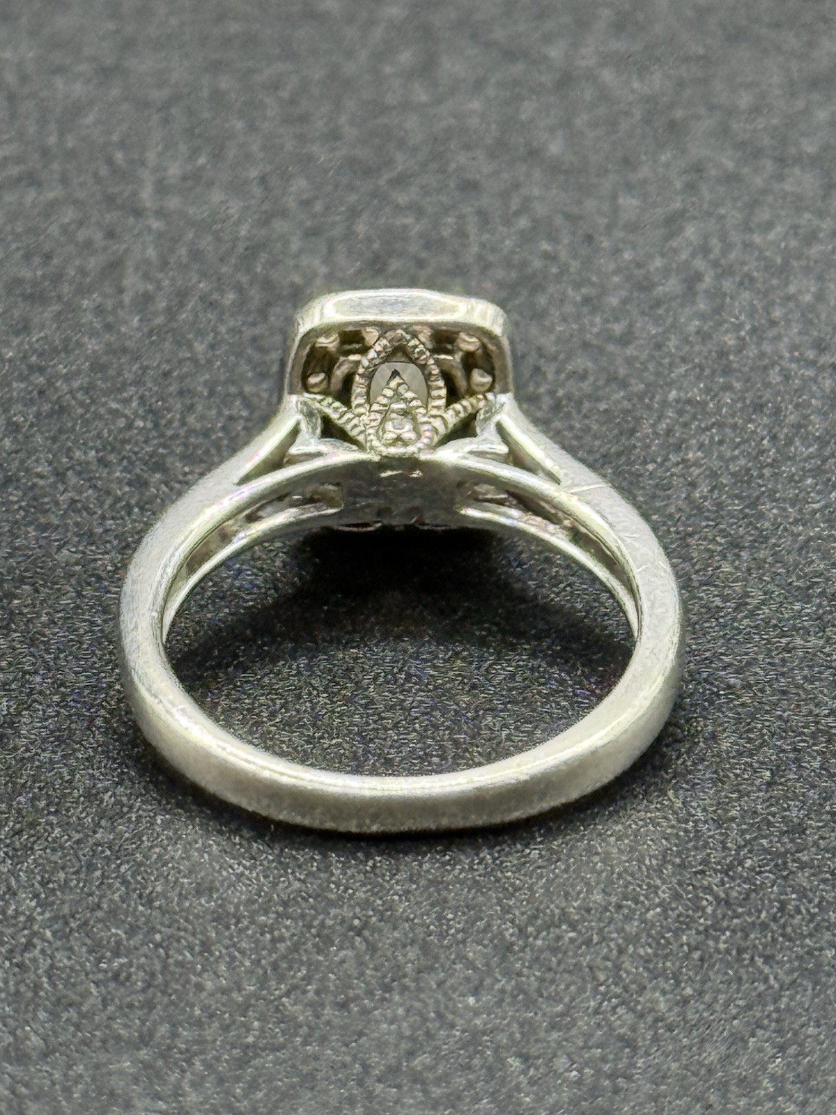 Sterling Silver Cubic Zirconia Halo Rectangle Engagement Ring Size 6.75 4g Z8 2