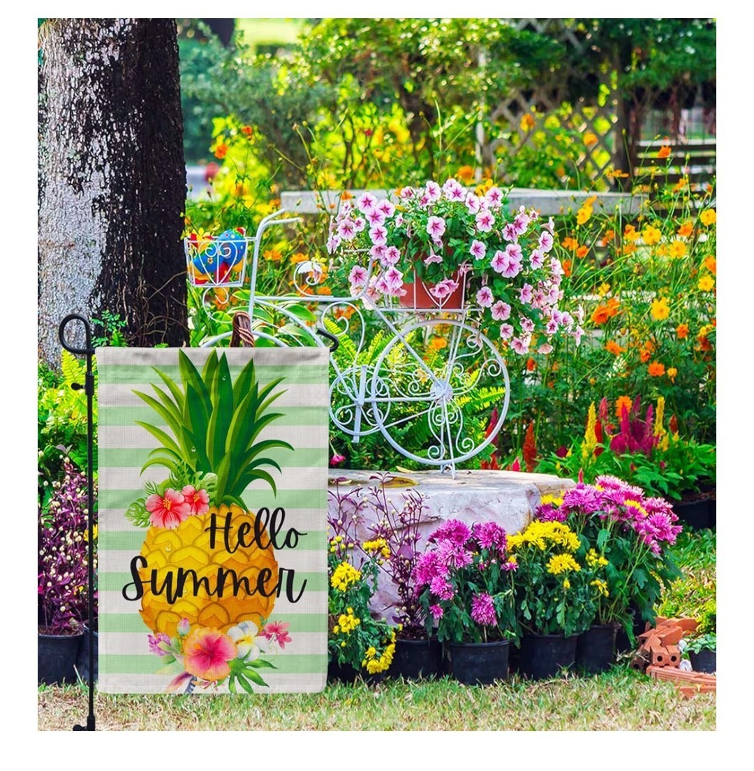 как выглядит 12x18 Hello Summer Double Sided Garden Flag With Pineapple And Flowers фото