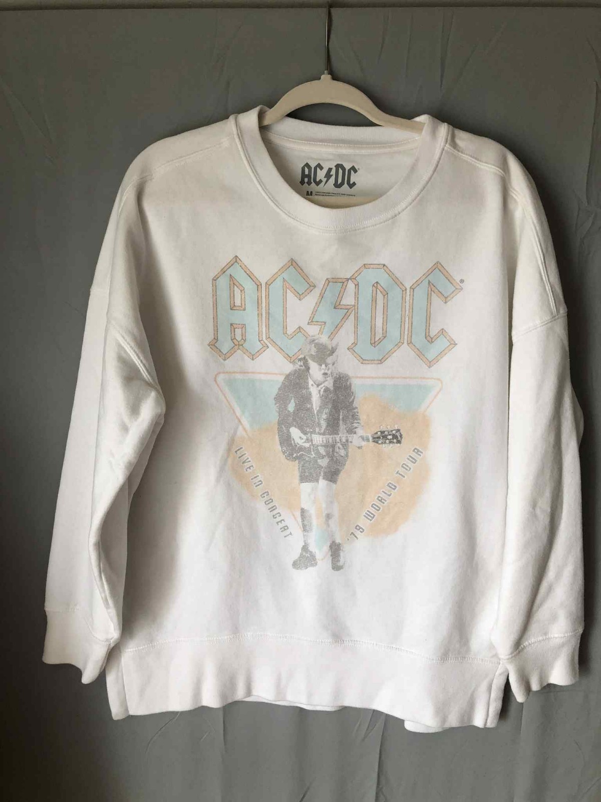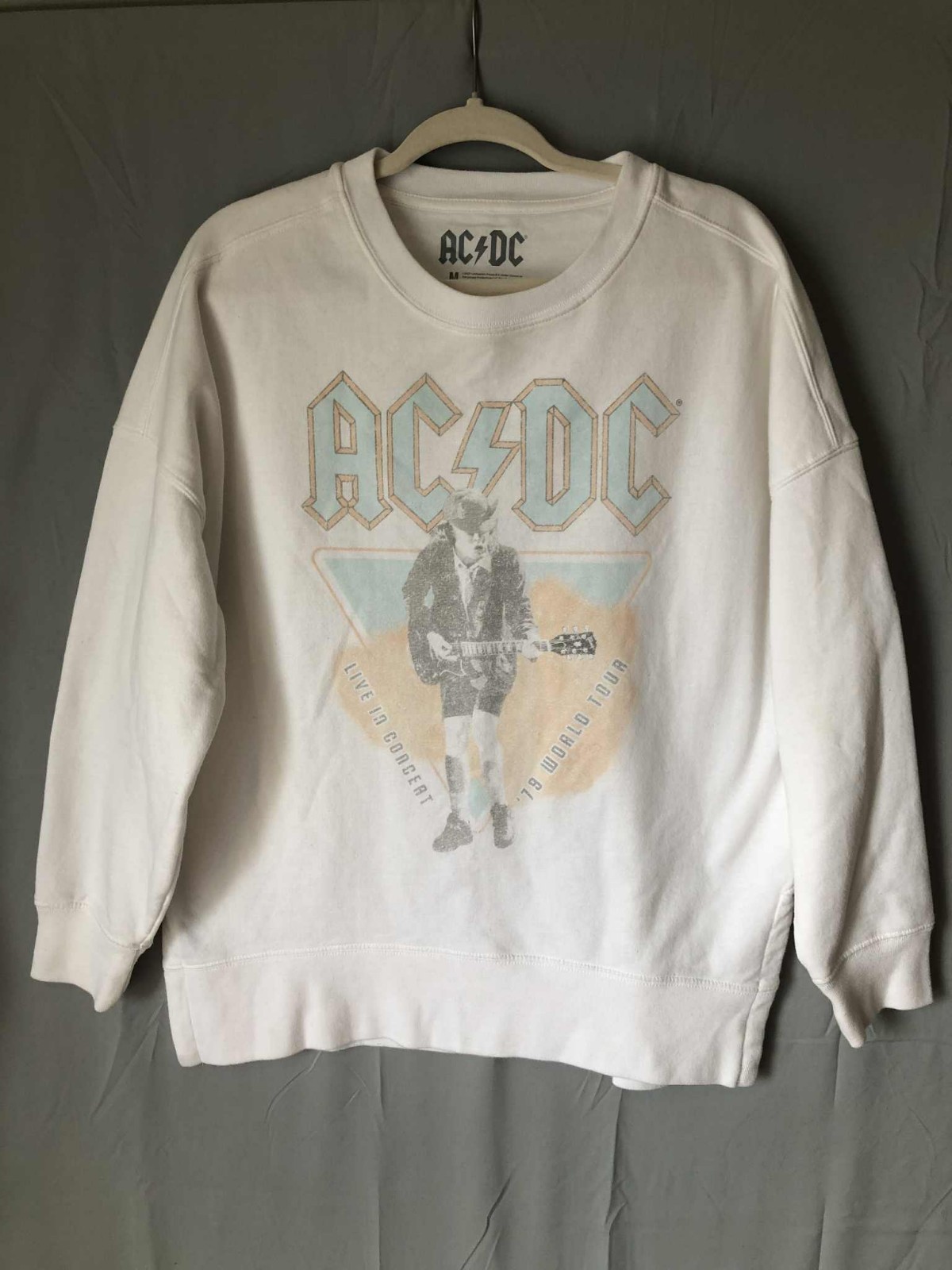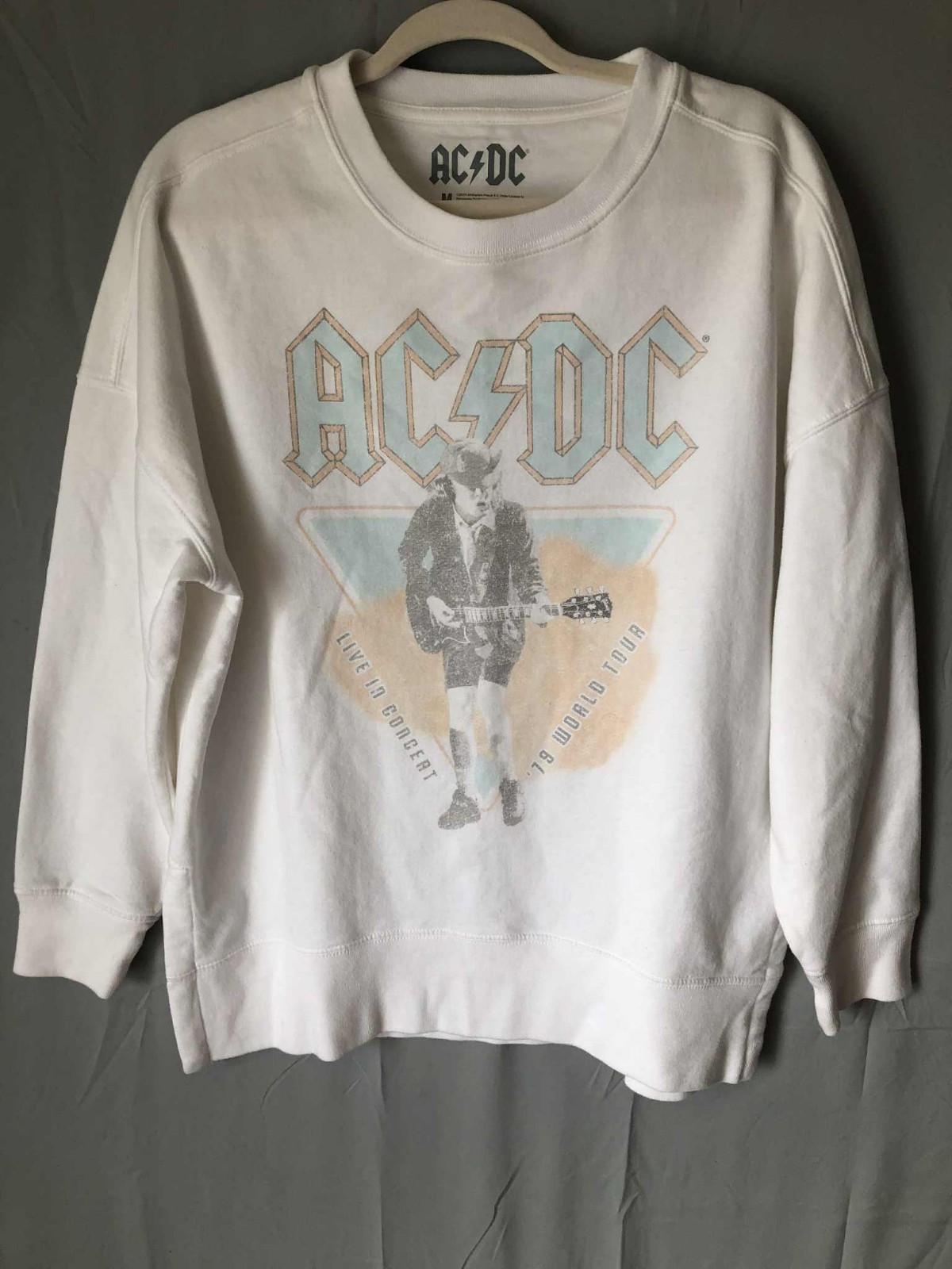как выглядит AC/DC Live in Concert 79 World Tour Band Sweatshirt Womens sz M White Read фото