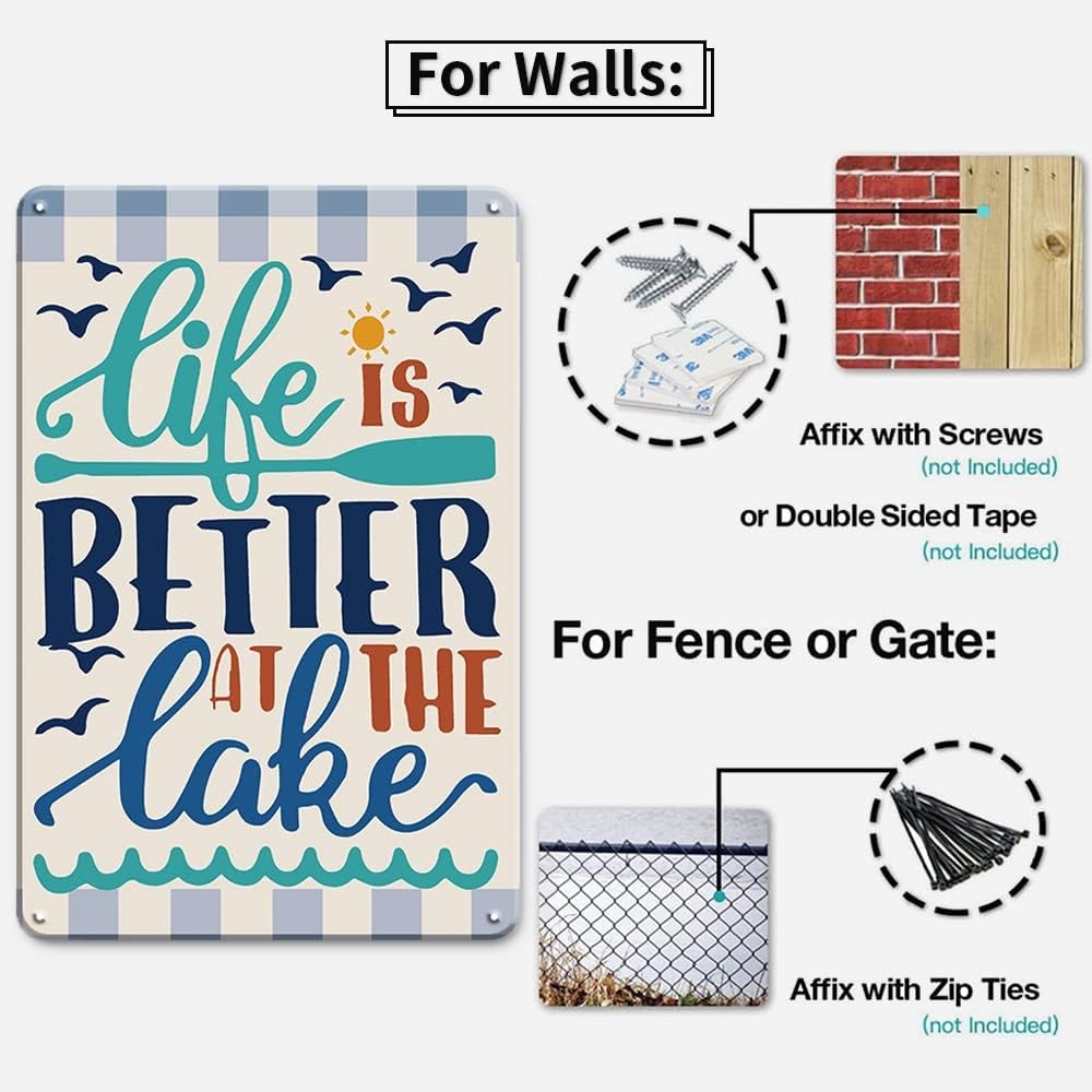 YOYI ART 2pcs Lake House Decor Sign 2Pcs, 2Pcs Metal Signs