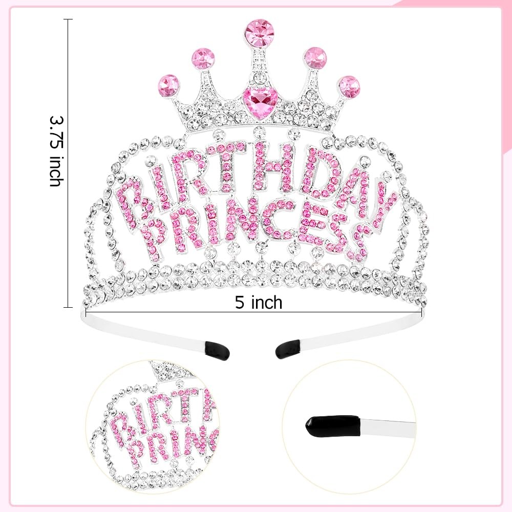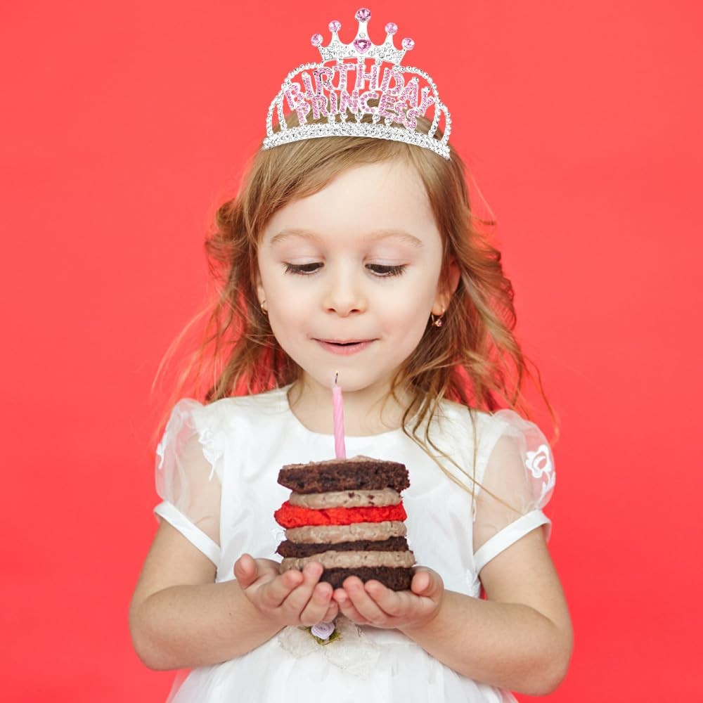 AHONEY Birthday Princess Crown Tiara for Girls Women, Girl Pink