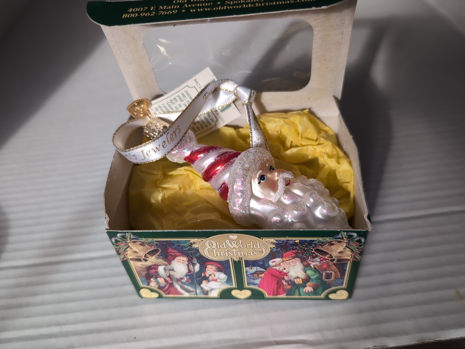 как выглядит Old World Christmas - Peppermint Twist Santa Ornament - With Box фото