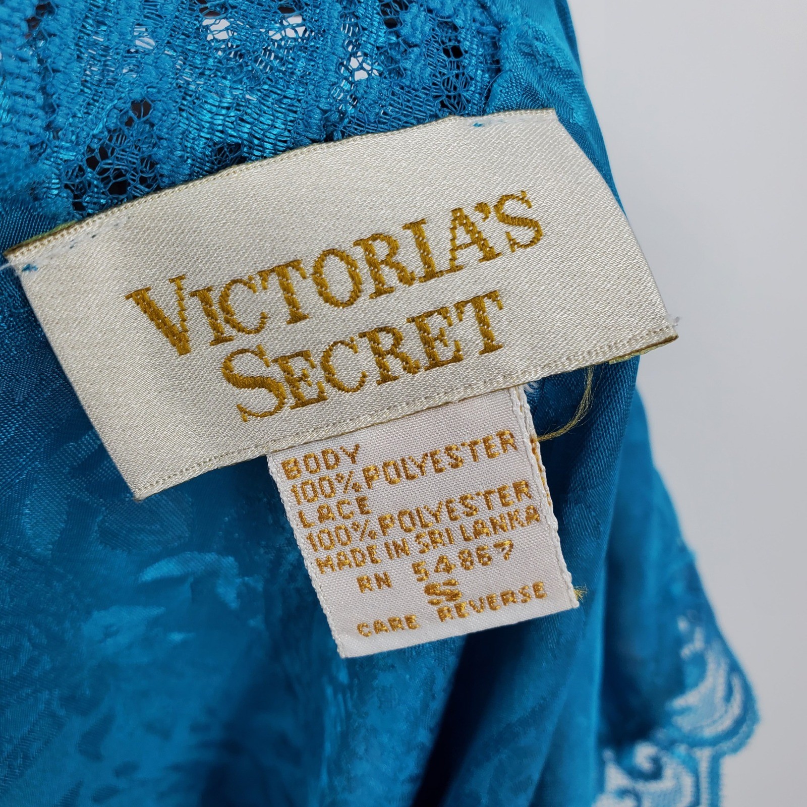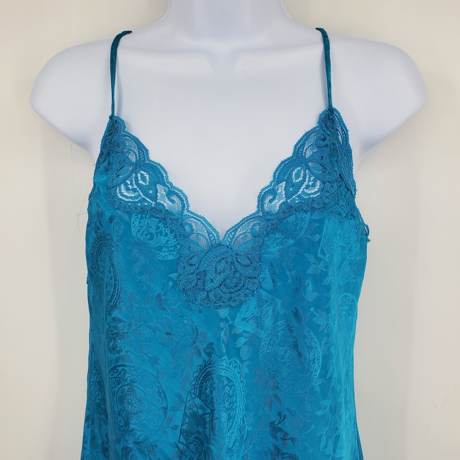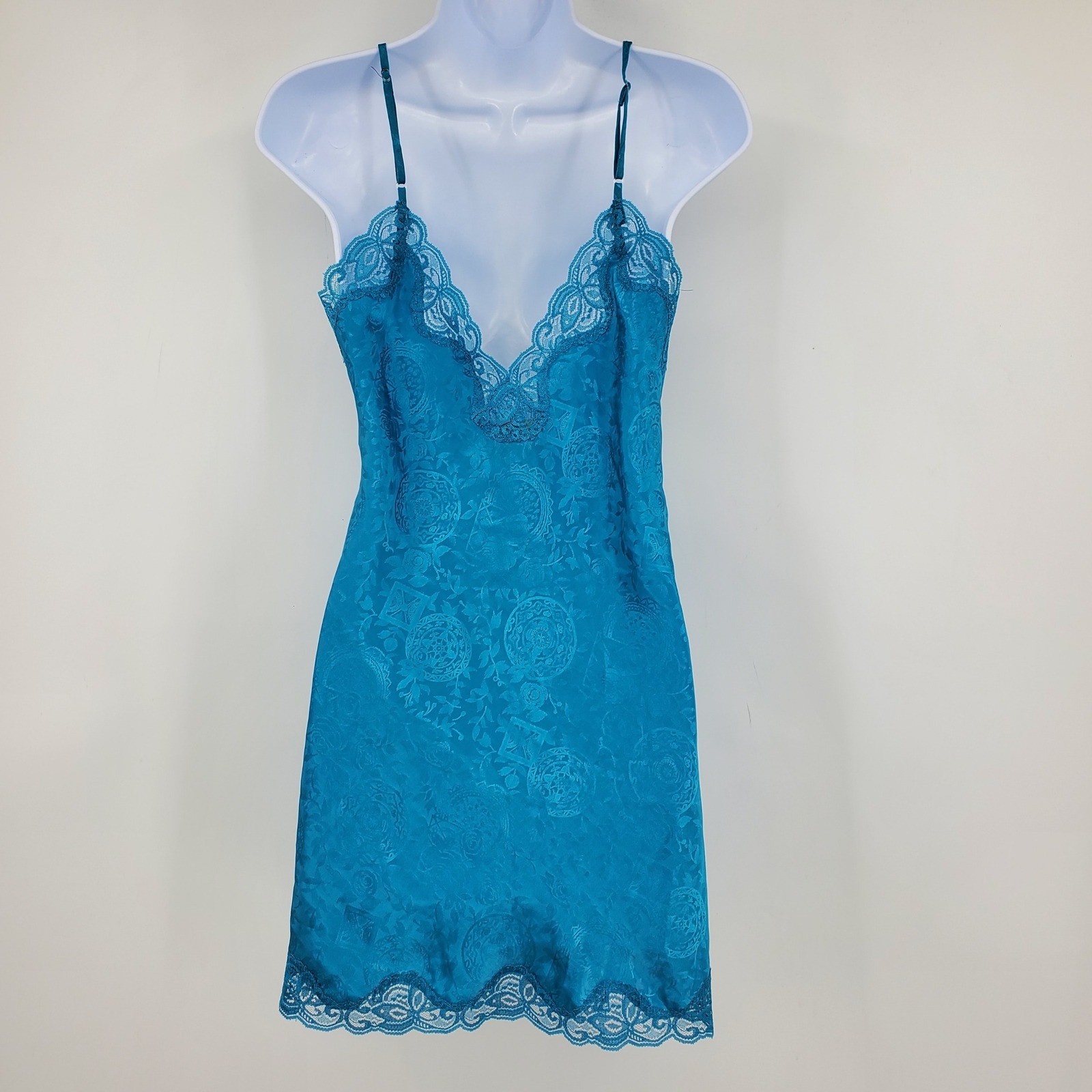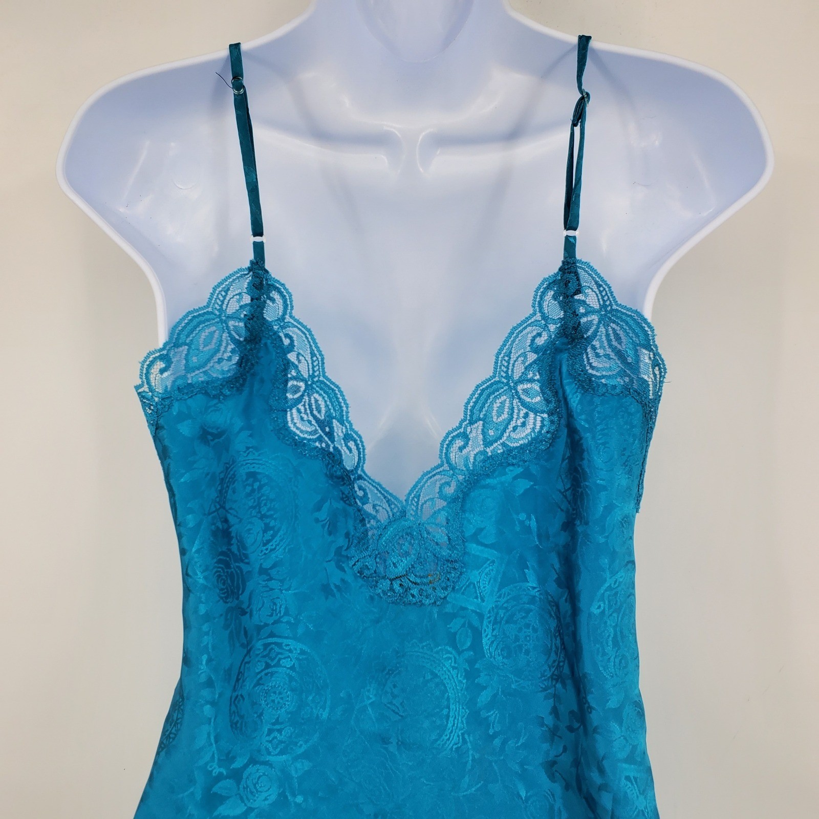 как выглядит Victorias Secret Gold Label Teal Y2K Satin Lace Trim Lingerie Slip Dress S фото