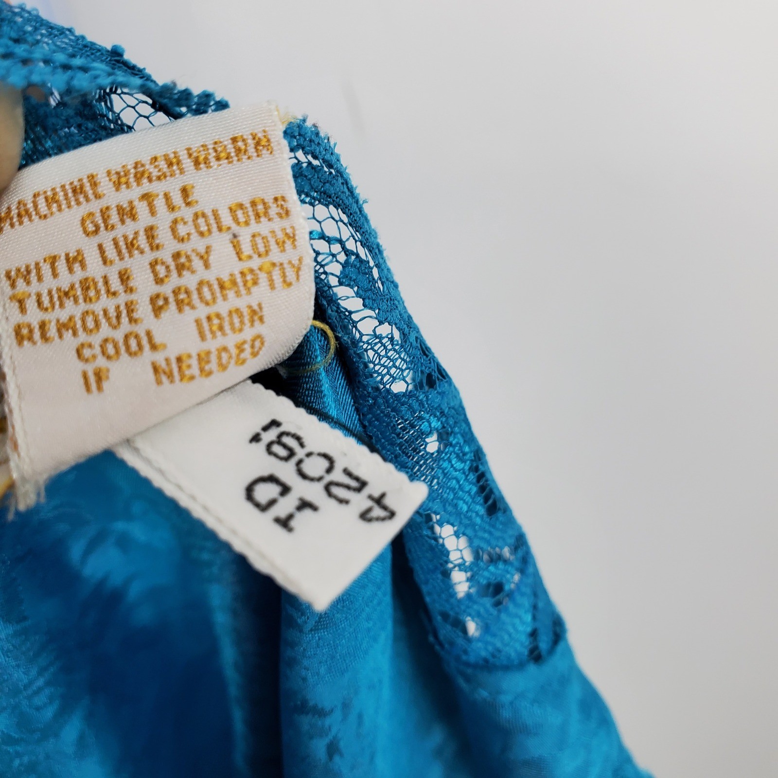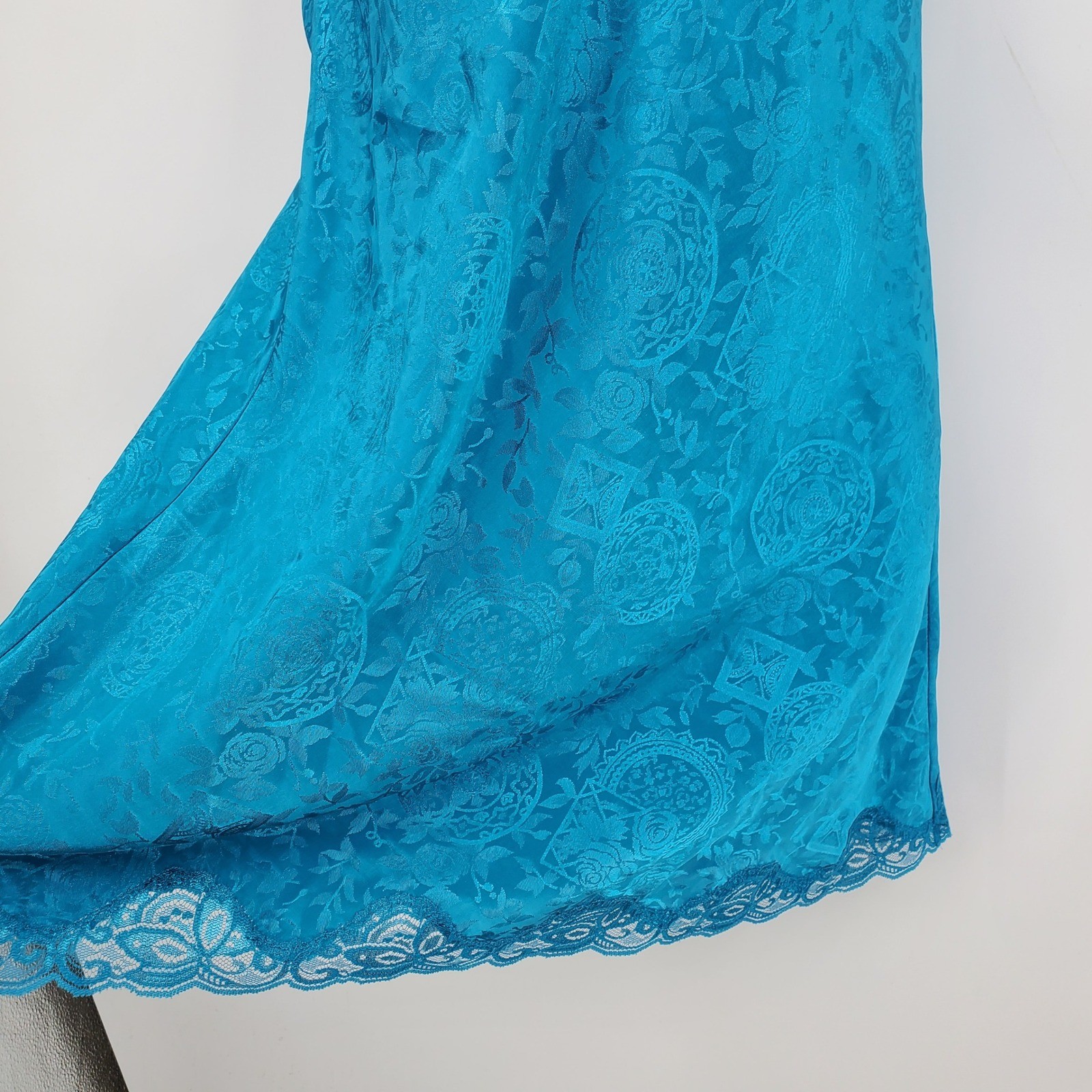 Victoria's Secret Gold Label Teal Y2K Satin Lace Trim Lingerie Slip Dress S