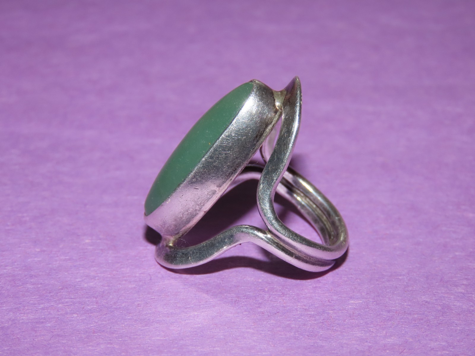 как выглядит JADE STONE STERLING RING VINTAGE HANDMADE 925 MEXICO SIGNED DDD 11.2g SIZE 9 фото