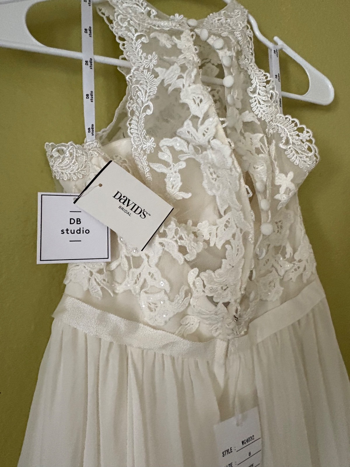 как выглядит wedding dress size 6 David s Bridal Ivory high neck halter gown. Never worn фото