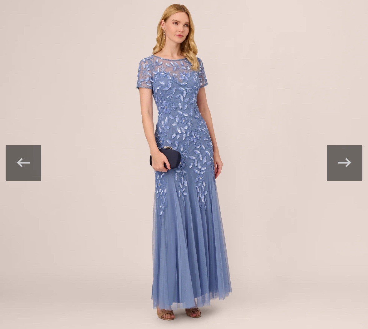 NWT Adrianna Papell Hand Beaded Short Sleeve Floral Godet Gown French Blue Sz 2