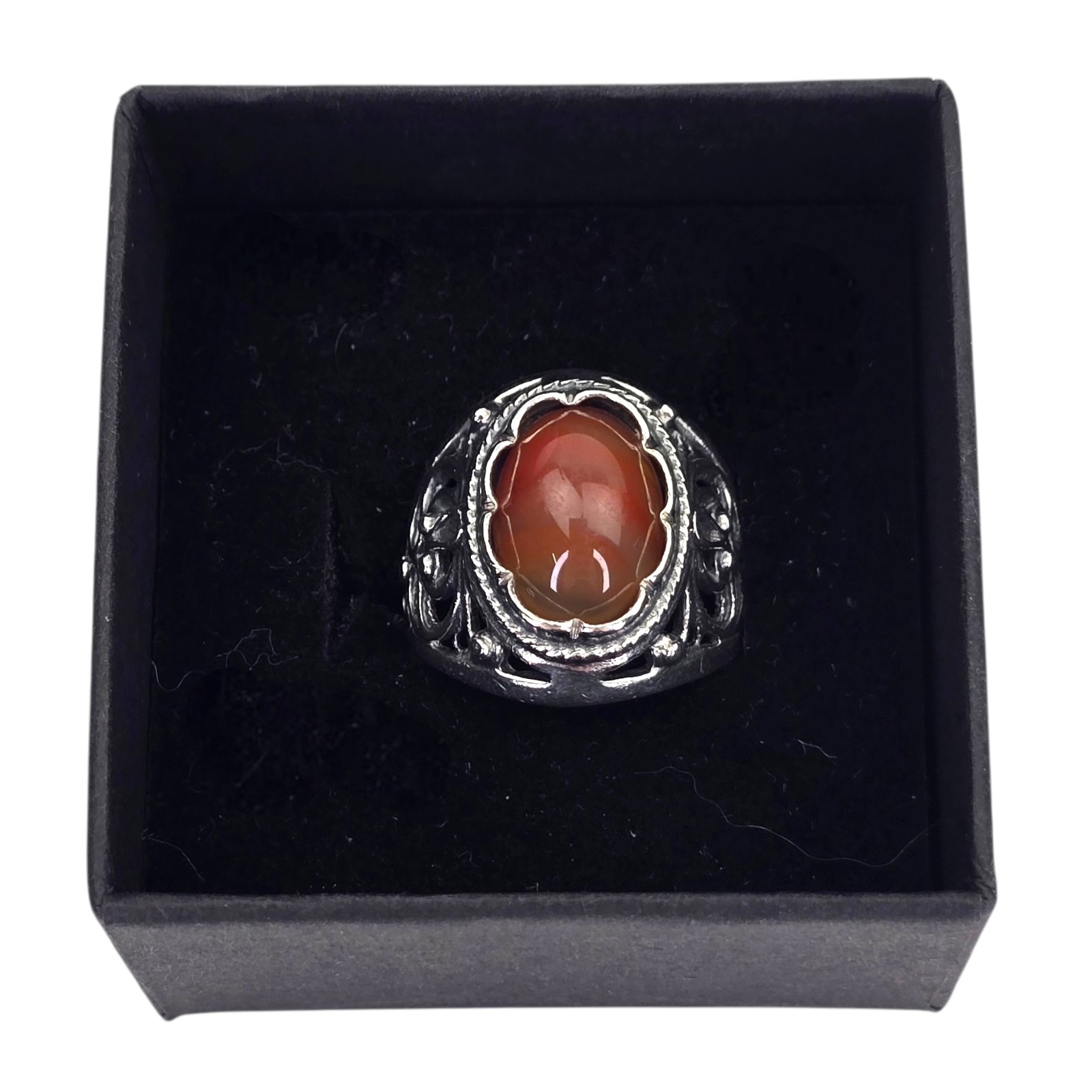 как выглядит Vintage 925 Sterling Silver Open Work Ring Natural Red Agate Gemstone Size 6.25 фото