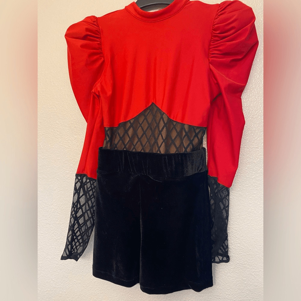 Revolution solo red black velvet biketard ZERO TO SIXTY RC22732 LC-large child
