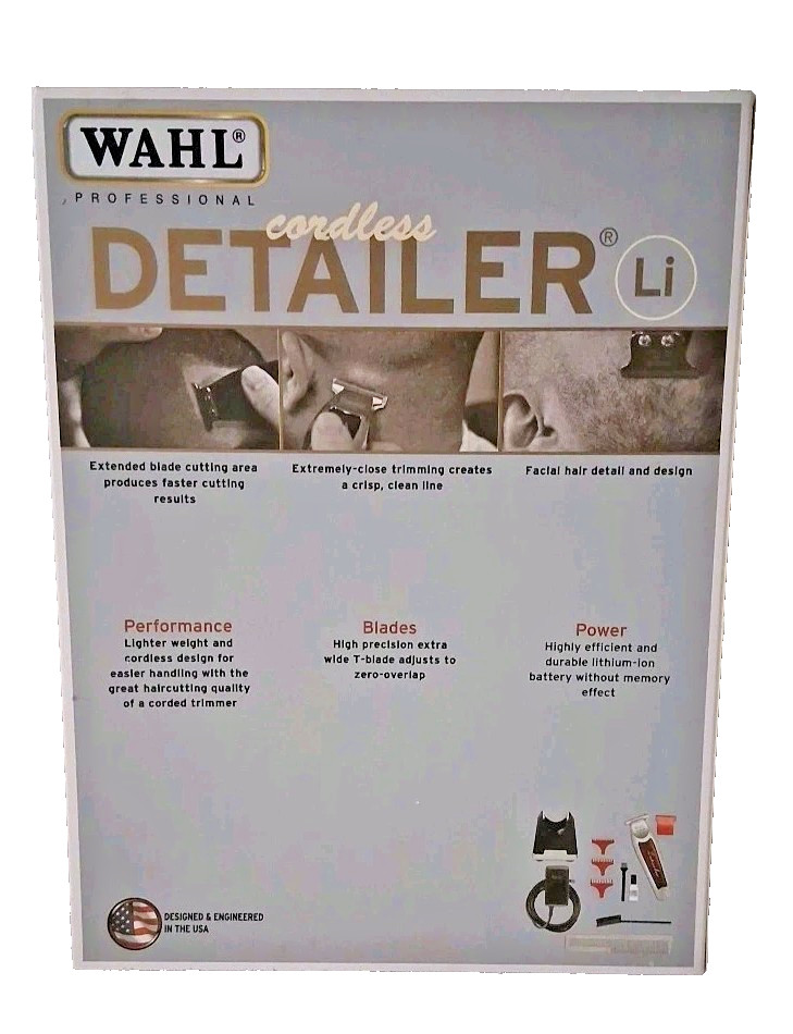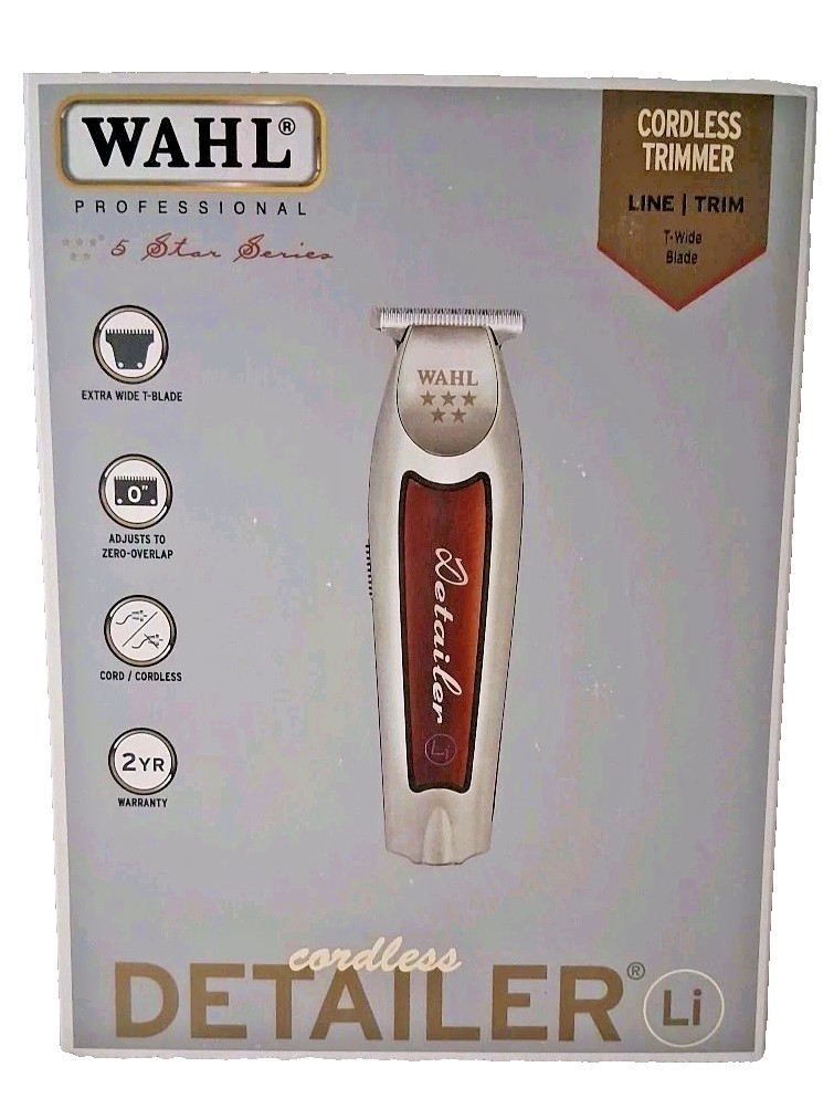 Wahl Pro Cordless Trimmer 5-Star Detailer 8171 Li Ion Wide T-Blade Silver Red
