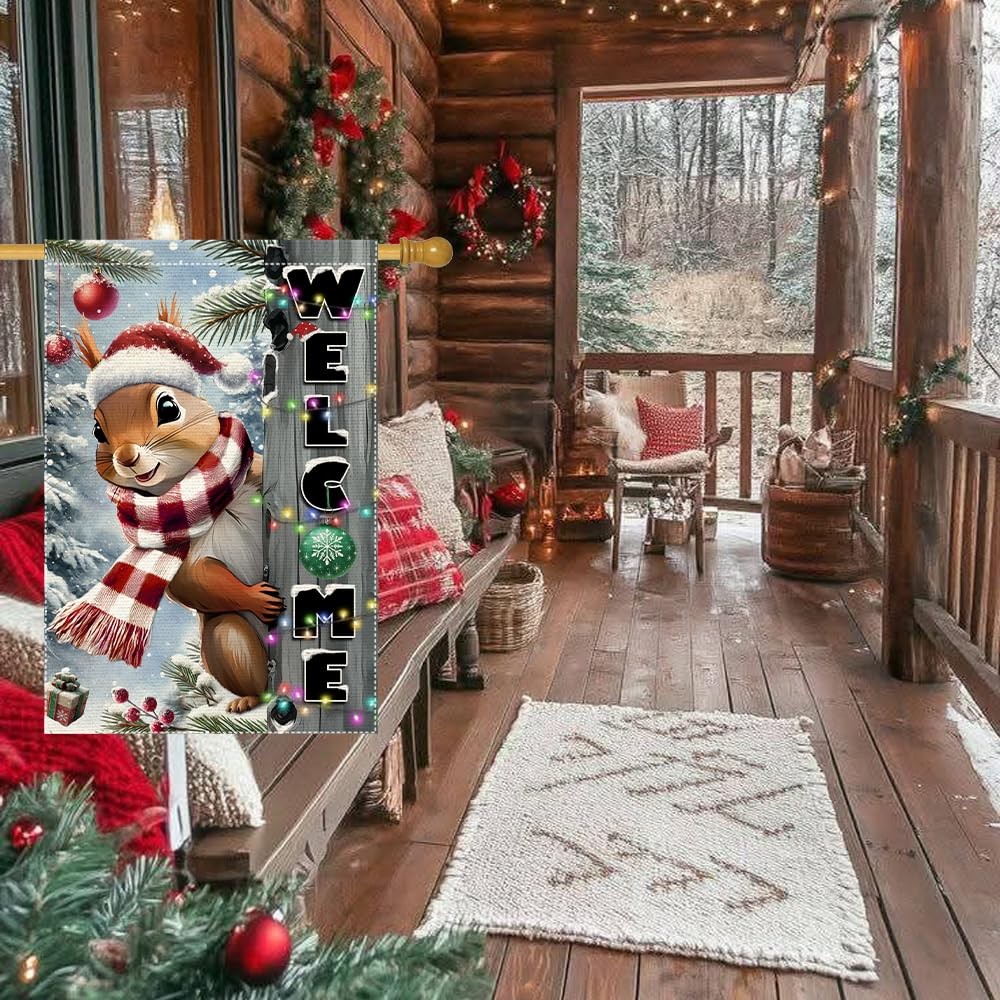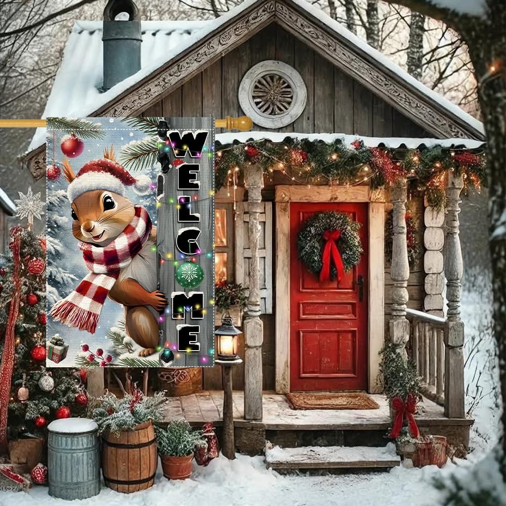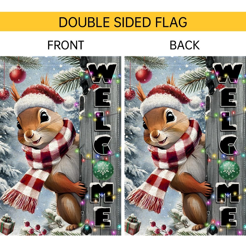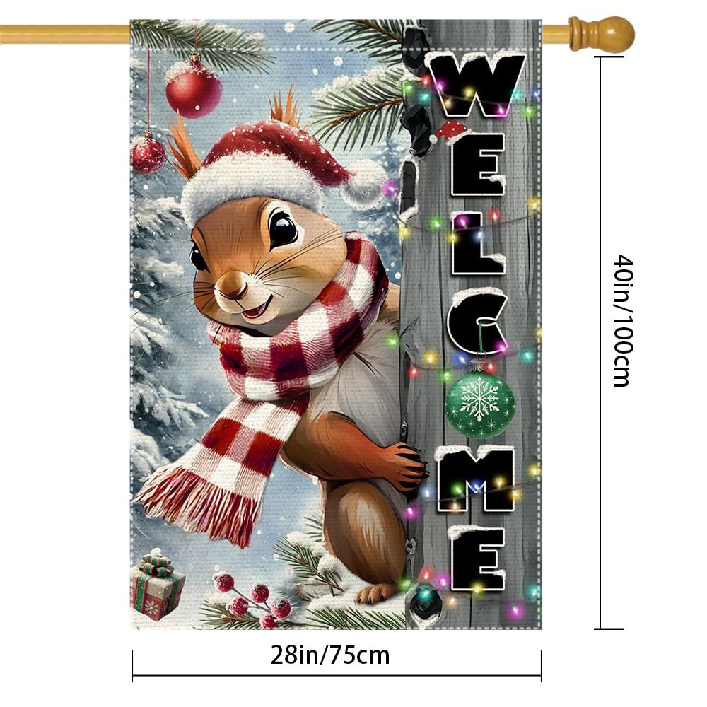 Christmas Garden Flag 28x40 inch The Nut Squirrel Welcome XMAS winter Garden ...