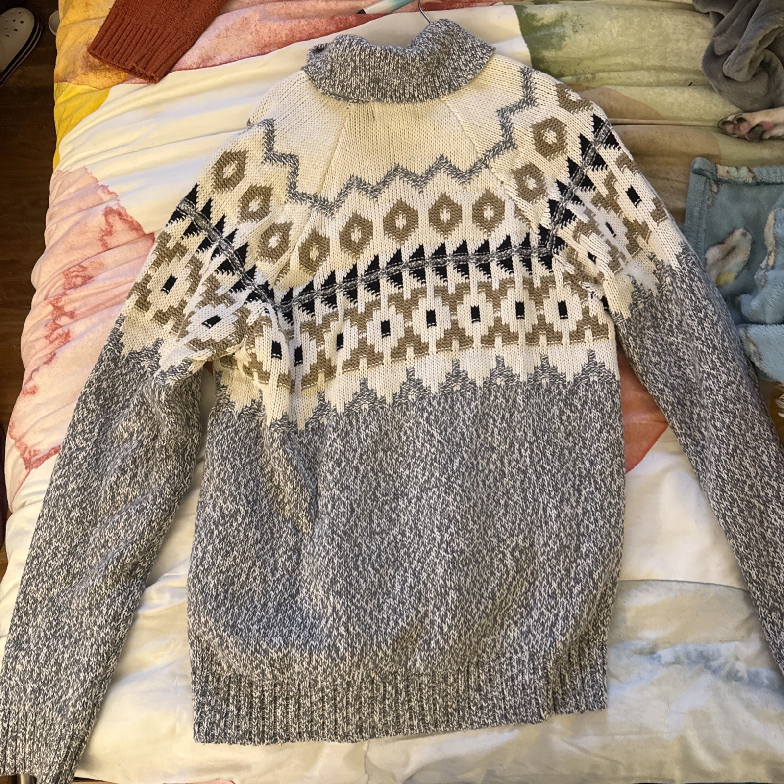 как выглядит Old Navy Mens Cardigan Sweater M Ivory Shawl Wool Blend Nordic Dad Ski Thick фото