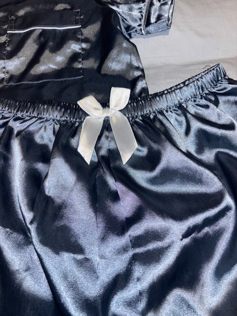 как выглядит Womens Pajama Set - Steel Blue Silk - Size M фото