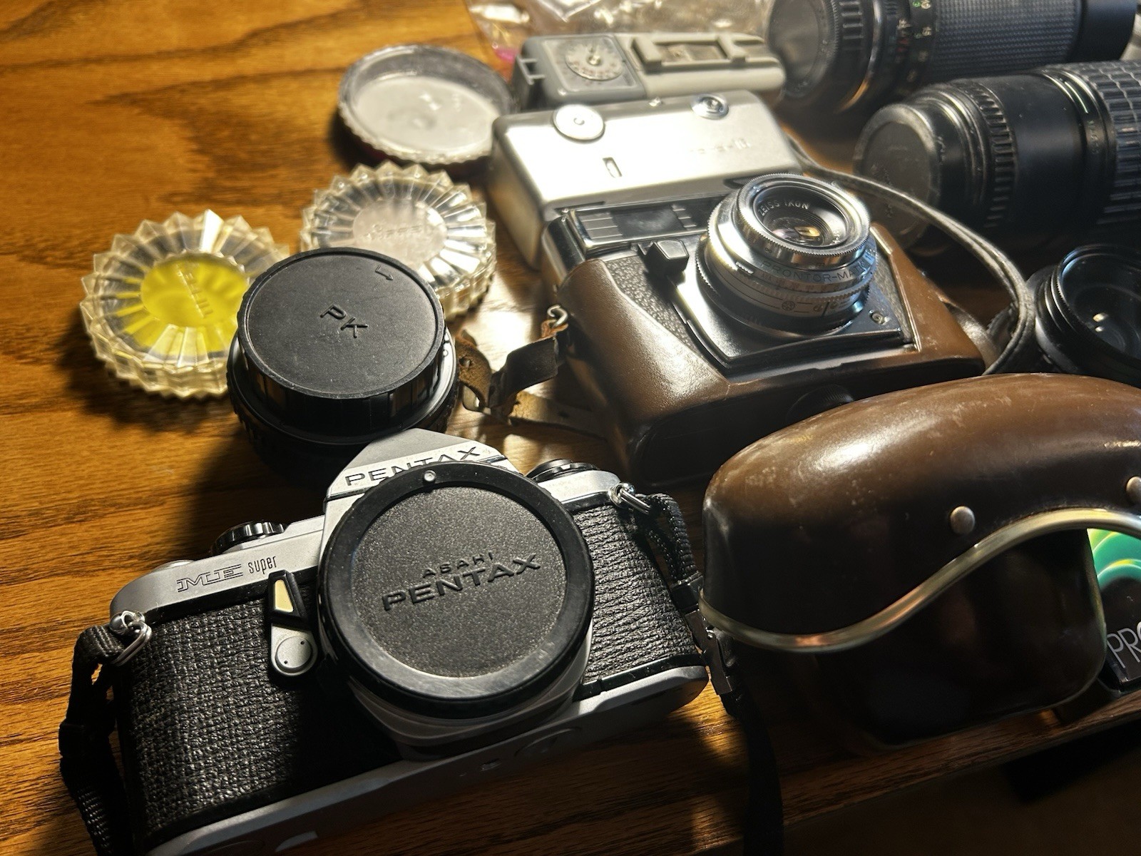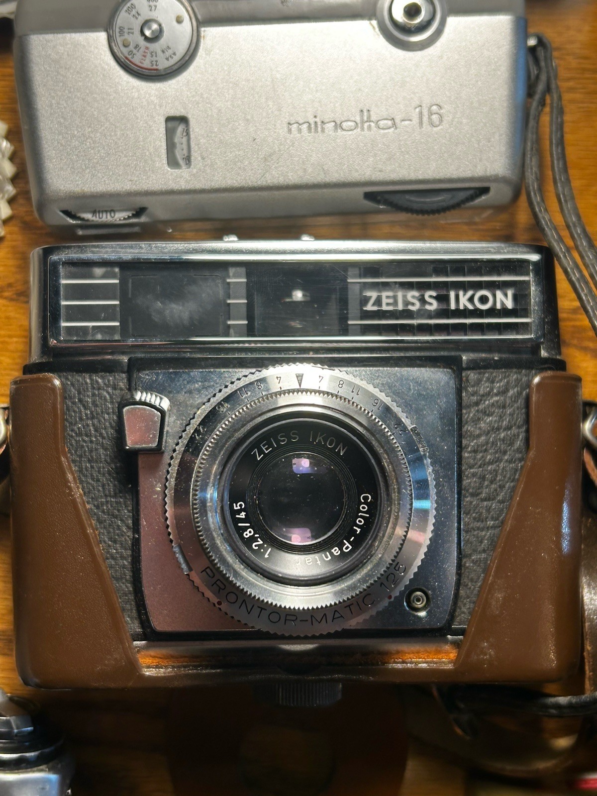 как выглядит Vintage Cameras And Lenses - Pentax, Kodak, Zeiss Ikon, Minolta 16, Hawkeye B фото
